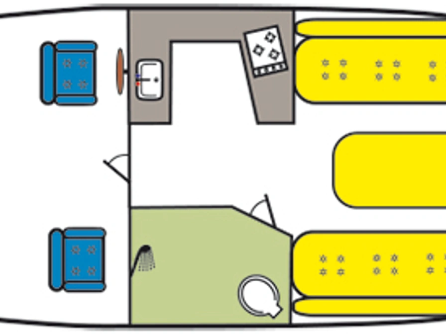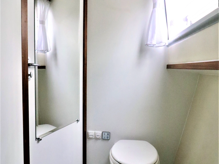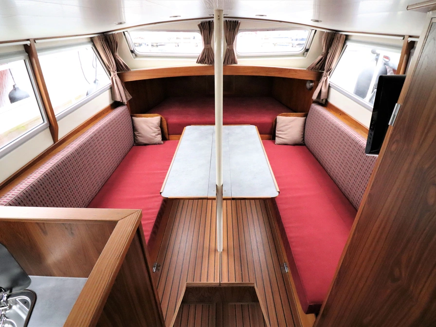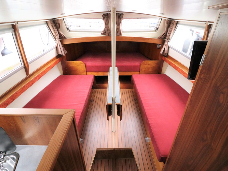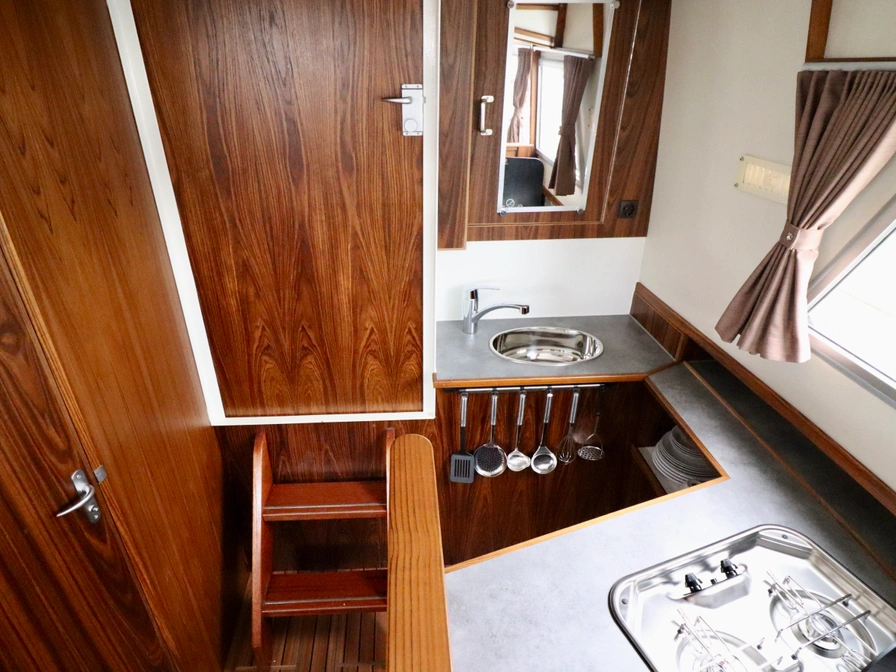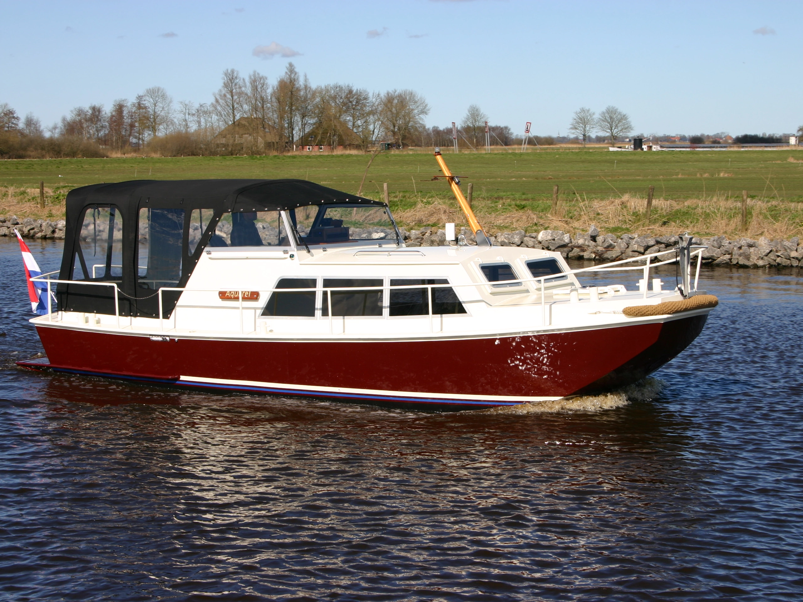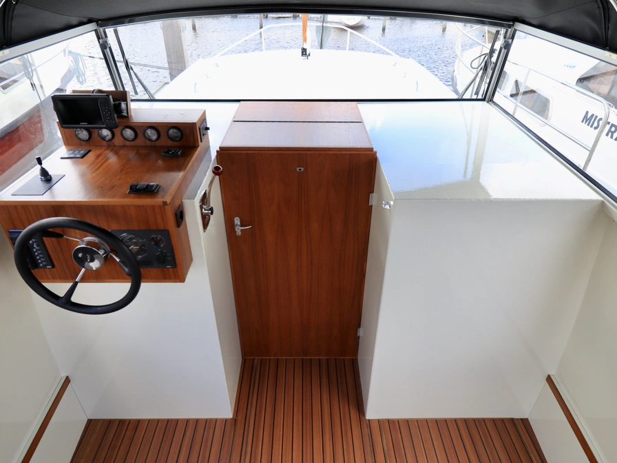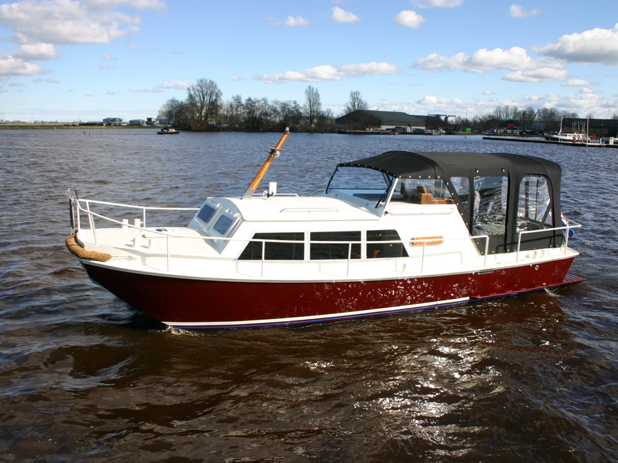 This motor yacht is a real space wonder with excellent sailing characteristics and a low clearance. You can effortlessly reach the most beautiful spots, which makes this ship ideal for two people who want to sail comfortably. Layout: In the forward cabin you will find a double berth, a dinette and a kitchen with hot and cold running water, a 2-burner stove, refrigerator and a complete inventory for 4 people. The boat is equipped with an electric toilet and a shower. The wheelhouse has a clear steering position, four seats and extra storage space. At the back you will find a fixed swimming ladder, handy for a refreshing dip or to easily get on and off the boat. Please note: do you have no sailing experience yet? Then sailing instruction is mandatory.
