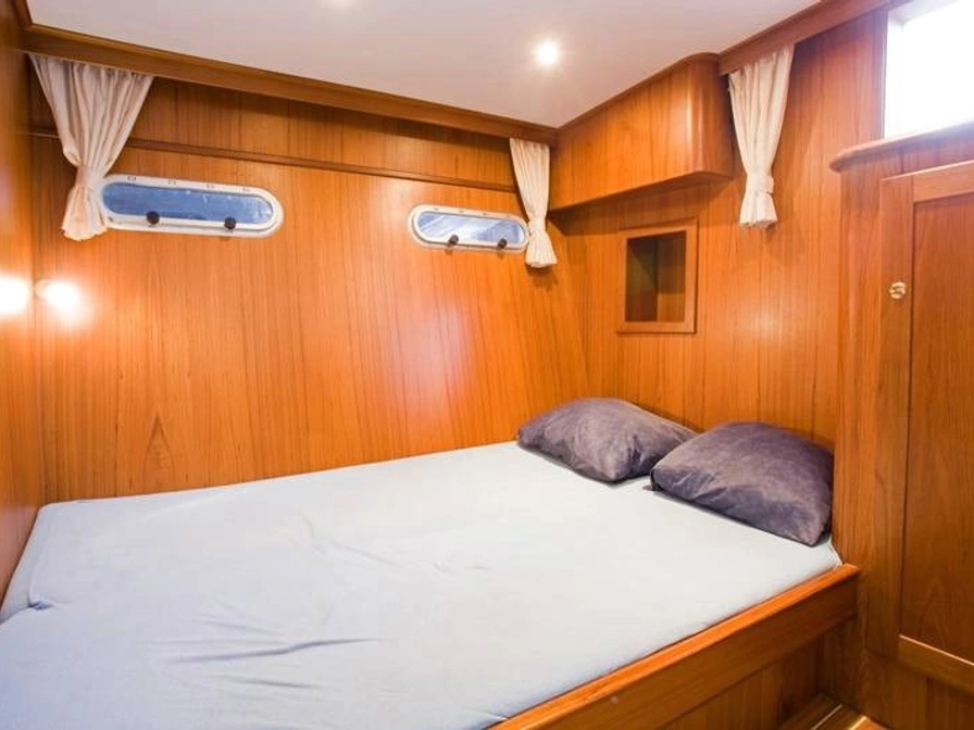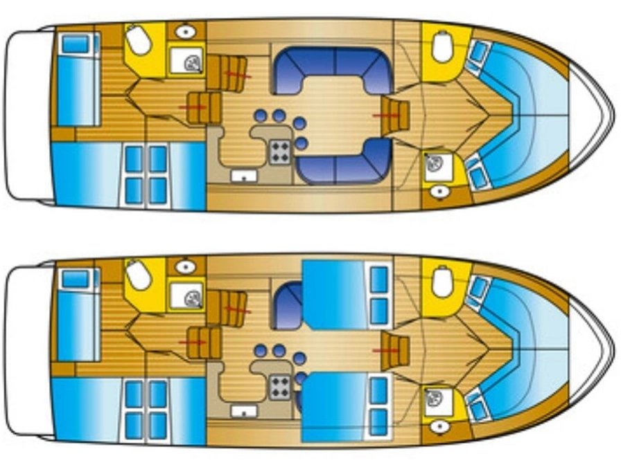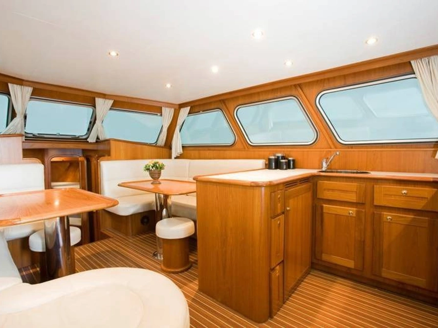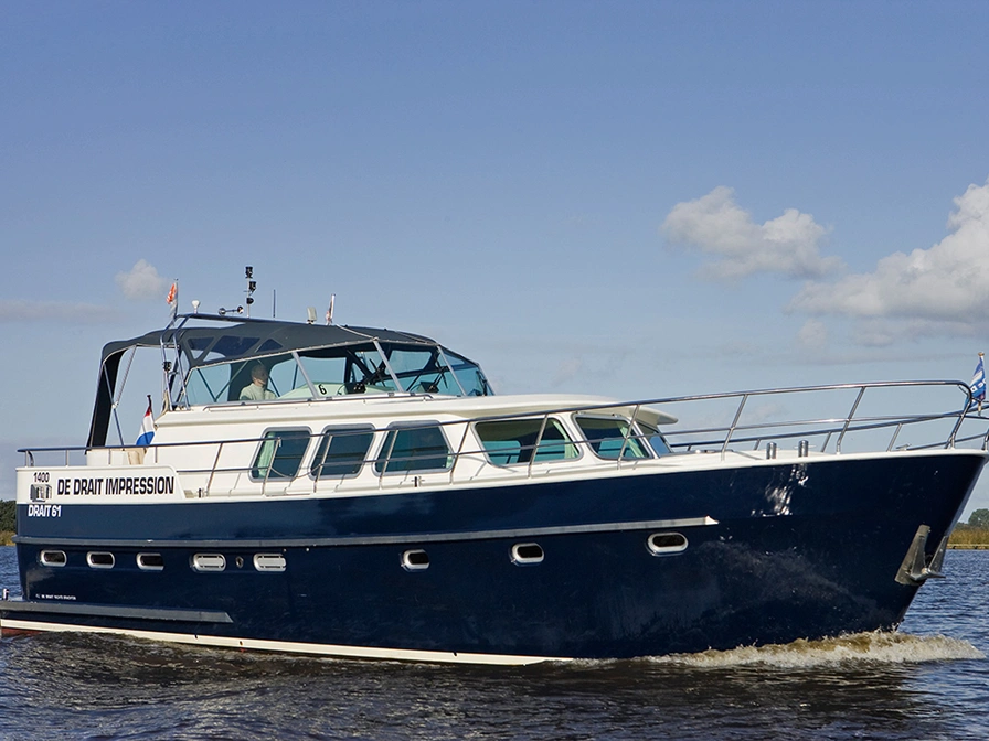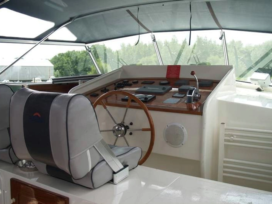 This Drait Yacht is a spacious boat with a capacity for 12 people. Very suitable for a family or group of friends. Look at the floor plan for the layout of this motor yacht. The boat has a spacious aft deck with a bench and patio furniture where you can sit comfortably with a large group. The aft deck is completely closed off with a large tent. The steering position is fully equipped with the necessary equipment. The boat is easy to maneuver with bow and stern thrusters. No or only a little sailing experience? Then book our skipper training to be able to go out with the boat with confidence and enjoy your sailing holiday on the Frisian waters!