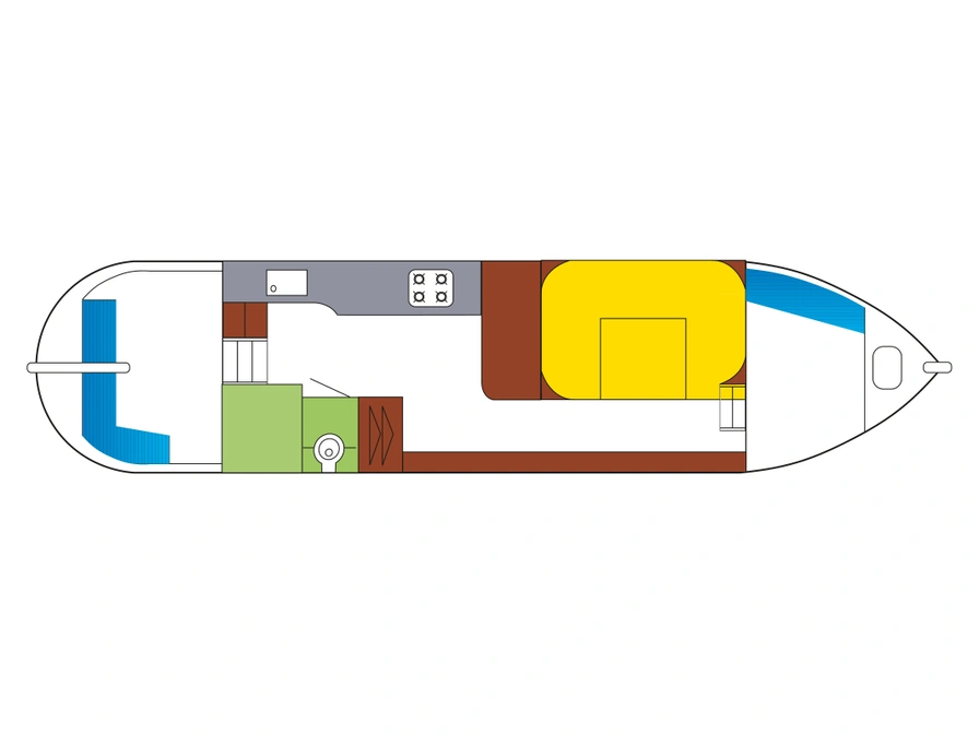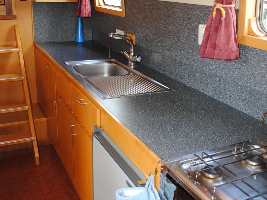 The FB Graft 925 is a cozy and comfortable houseboat, ideal for two people. The layout is practical and functional, with a comfortable seating area and open kitchen. Furthermore, the bathroom features a shower and toilet. Outside, the Graft offers a beautiful, spacious deck, perfect for a moment of relaxation while cruising the Frisian waters. Thanks to the low air draft, you can easily pass under bridges, making the boat perfectly suited for undertaking routes such as the Elfstedentocht.
