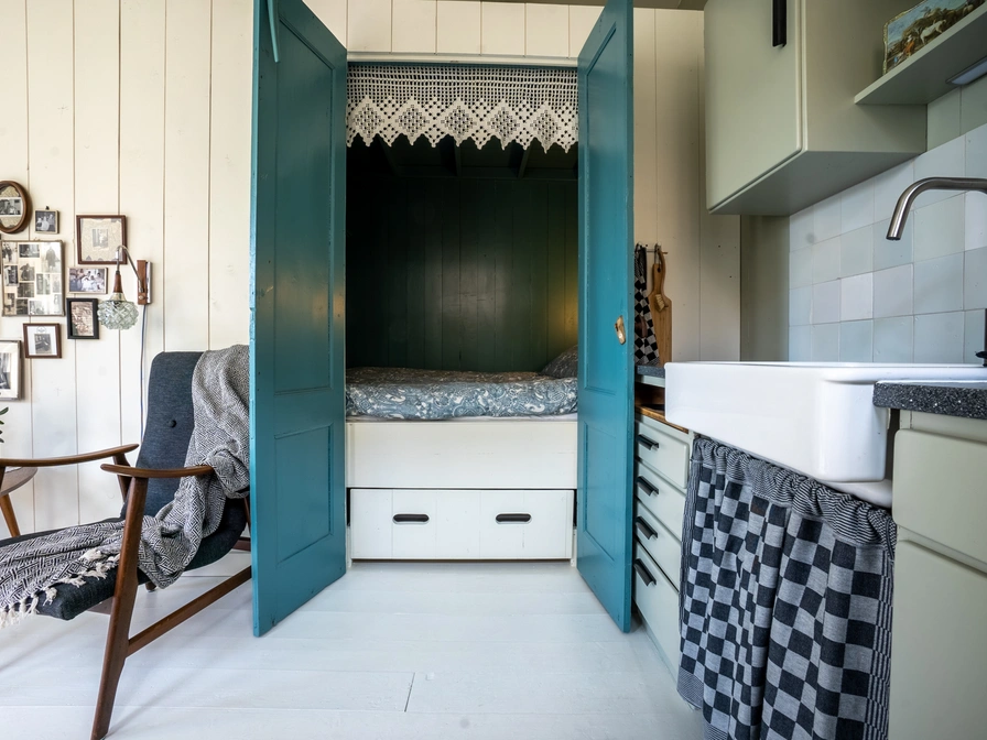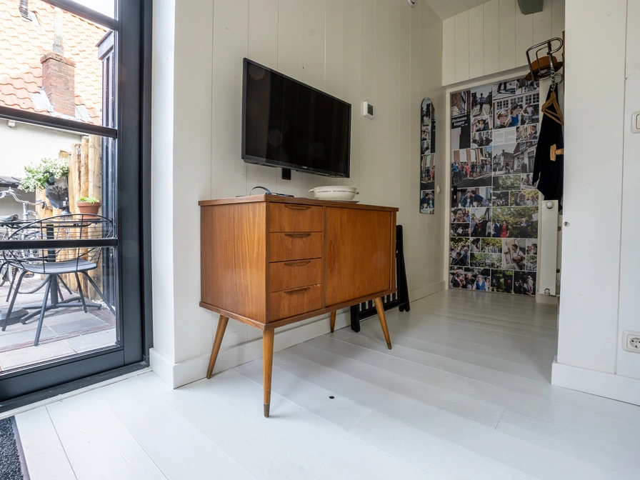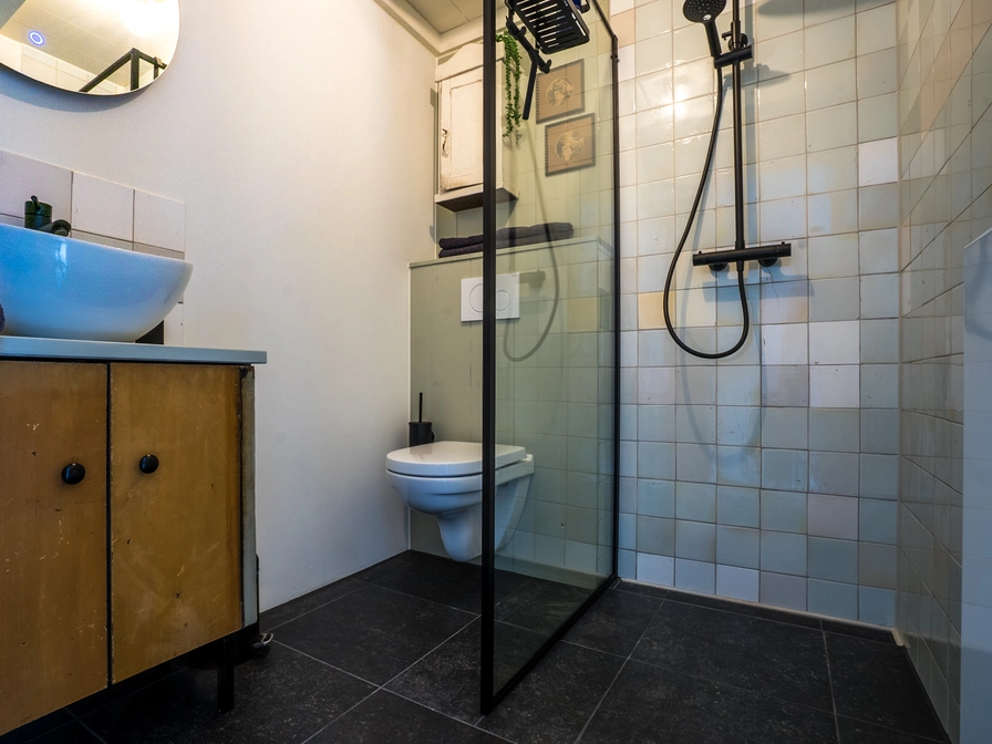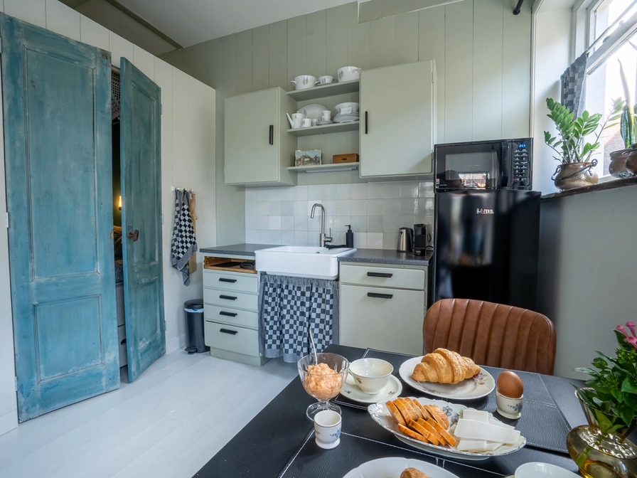 Come and spend the night in this cozy apartment. The living room is a cozy space with a sitting and dining area and kitchen. The kitchen is equipped with a combination microwave and refrigerator. You sleep in the cozy box bed (2.10x1.60m). You also have your own bathroom with rain shower, toilet and sink. Through the patio doors you step onto your own terrace with a seat and the possibility to charge electric bicycles. To reserve this apartment, you must contact the owner of the apartment.