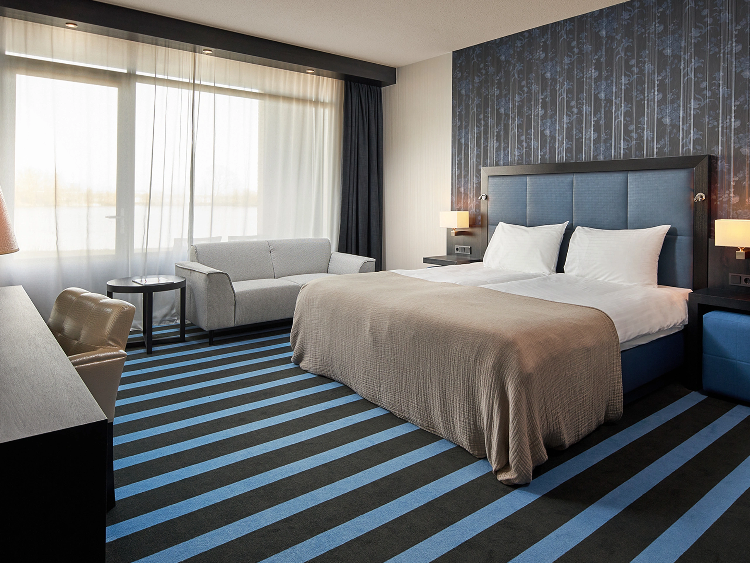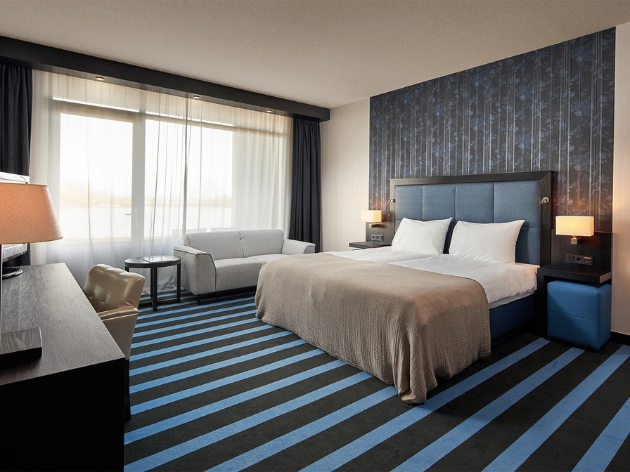 This spacious and luxurious Comfort room, with a view of the water, is a mix of timeless elegance and contemporary comfort. The room has a separate bathroom with toilet, bath and separate shower. The room offers modern extras such as air conditioning, minibar, flat screen TV, safe and wireless internet. The tasteful furnishings with a desk and a comfortable sofa are complete with the excellent beds that guarantee a good night's sleep.