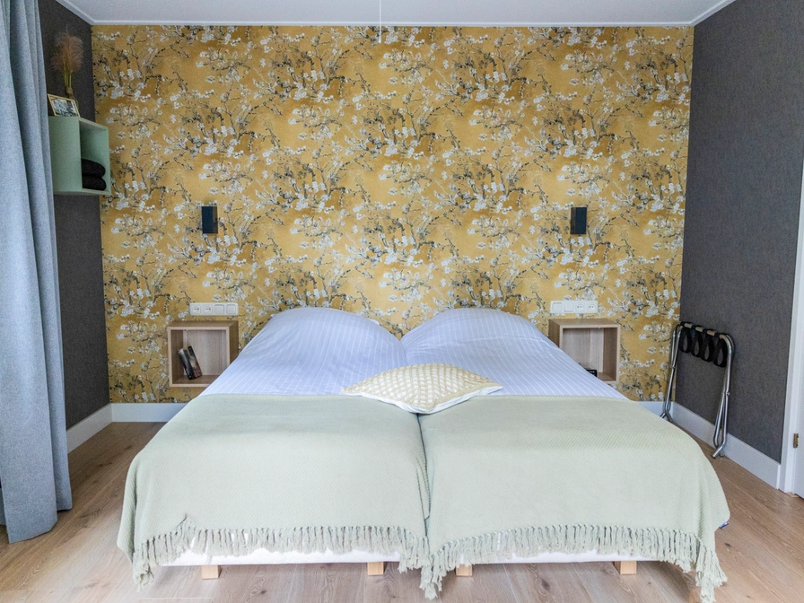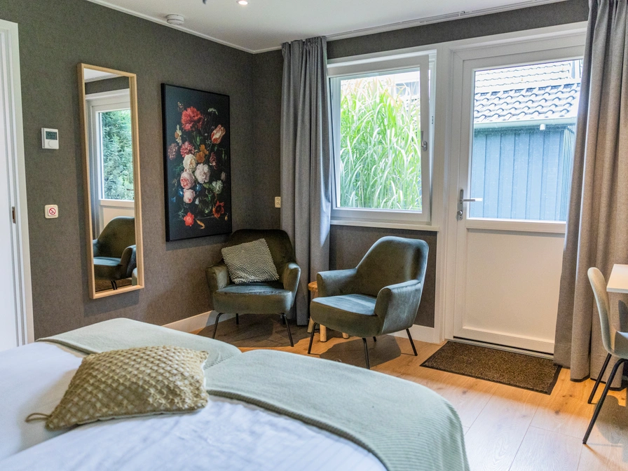 Hotel Restaurant Jans offers 15 rooms in Swedish chalets located in the garden behind the hotel. Each room has a private entrance and a small terrace. The chalets feature a spacious bedroom with two single beds, a bathroom, and a seating area. To book a chalet at this hotel, please contact the hotel directly.