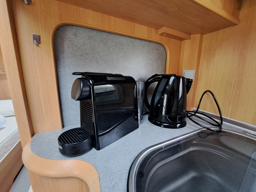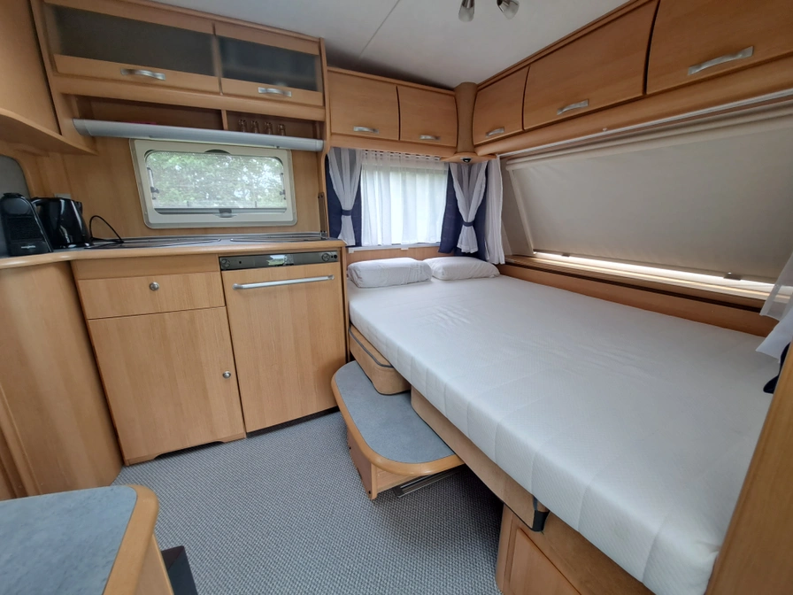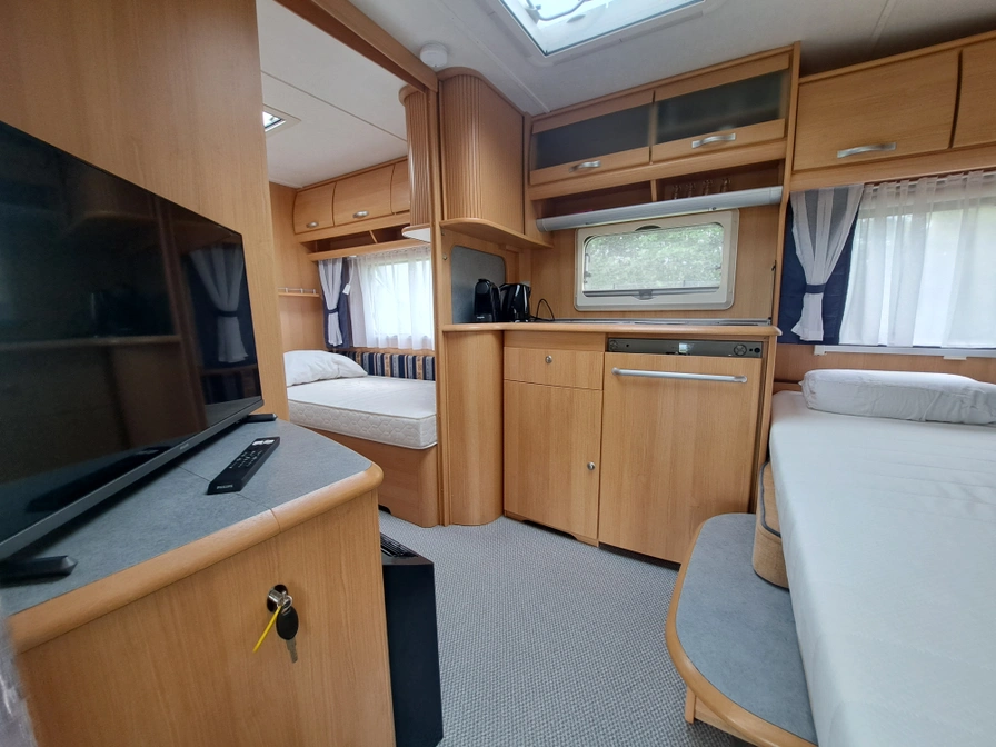Enjoy the camping feeling in this fully equipped caravan for four people, with awning, toilet and comfortable sleeping areas.