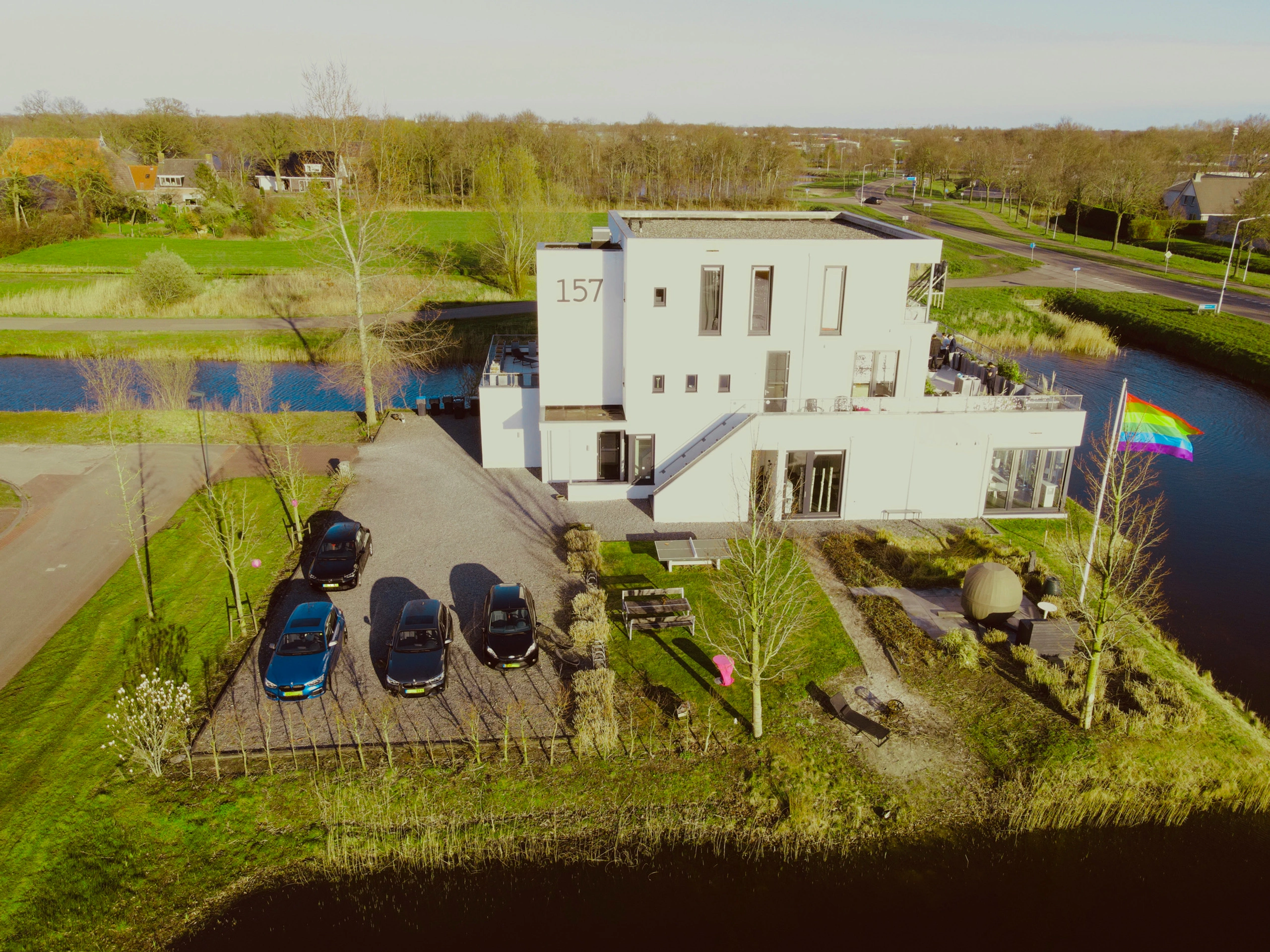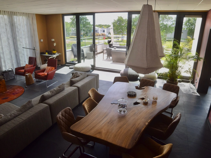 This ridiculously large, sustainable and particularly luxurious detached villa with two kitchens and two living rooms, and lots of privacy, is located on its own peninsula in the watery Wyldehoarne residential area in Joure, centrally located in the Frisian lake area. There are 11 parking spaces on site, and there is a private charging station. Heerenveen station is the nearest train station, and two bus stops are within walking distance of the villa. If you suffer from asthma or allergies, then you are definitely in the right place here, because all materials and fabrics used are anti-allergenic. The travel time to and from Schiphol/Amsterdam is just under 45 minutes. We have a very good connection to the A6 and A7, without speed bumps and traffic lights.