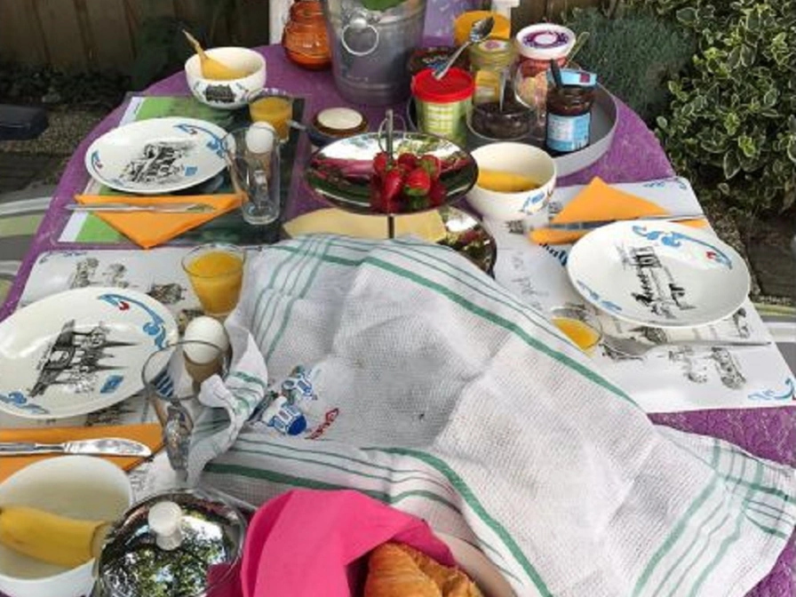 The kitchen is not accessible to guests, but you can join us for dinner. Dinner (3 courses) is offered for €18.00 per person and breakfast is offered for €8.00 per person.