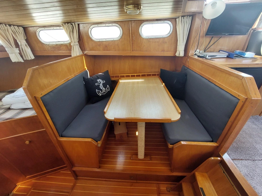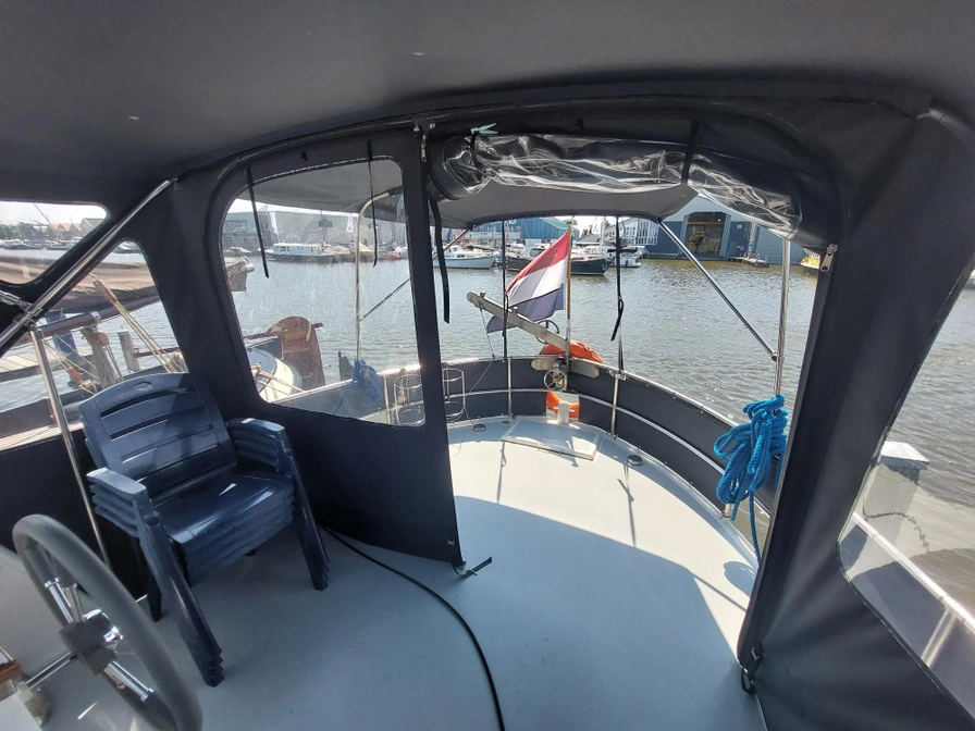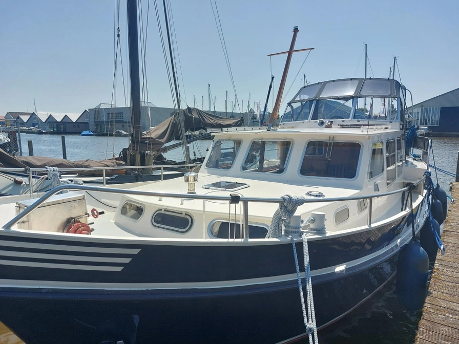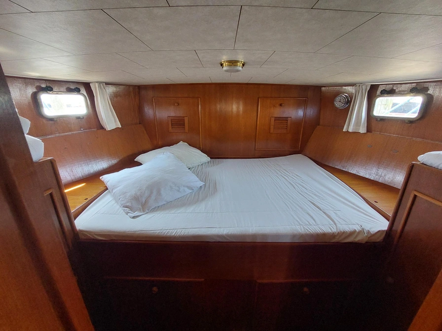 The Bruhas cutter named Ichtus, size: 11.70 x 4 x 1.30 meters, is a beautiful ship with 5 berths. This cutter has a bow thruster, double steering, spacious aft deck, toilet, shower, spacious owner's cabin and generator. In short, fully equipped so that you can enjoy a relaxing holiday.
