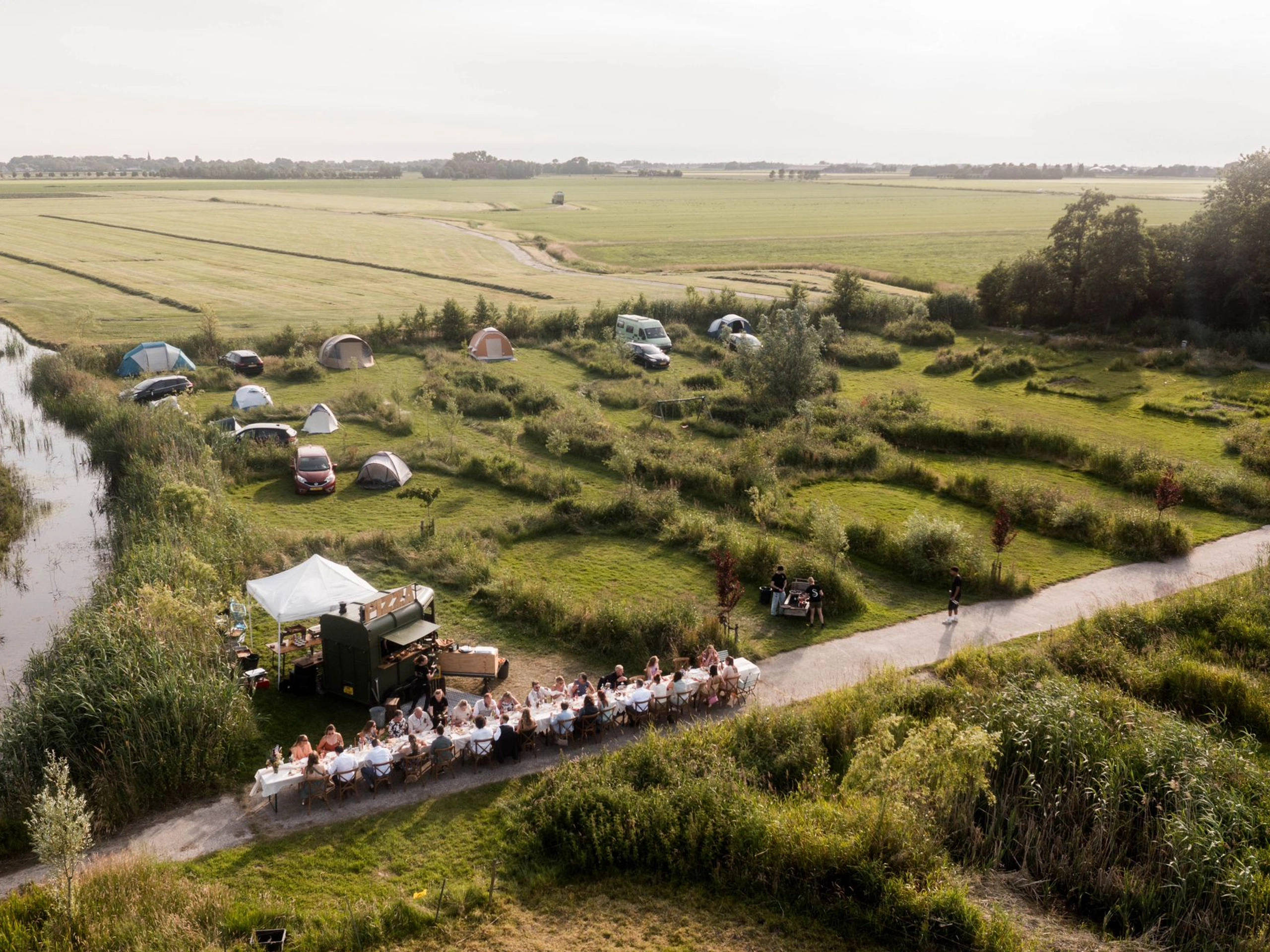 Tucked away on the outskirts of Sneek, on Ivige Leane (Eternal Lane), behind the city farm, lies a small, naturally landscaped camping field. Sustainable travelers, young families, and adventurers of all ages feel right at home here. No frills or unnecessary luxury. Simply a place to unwind, admire the life around you, and celebrate life. Johannes and Herma are happy to welcome you and tell you all about this place, our plans, and what there is to do in the area. Explore our young food forest, connect with the horses, and pick your own fresh herbal tea. Our chickens provide fresh eggs, and the bakery is a five-minute bike ride away.