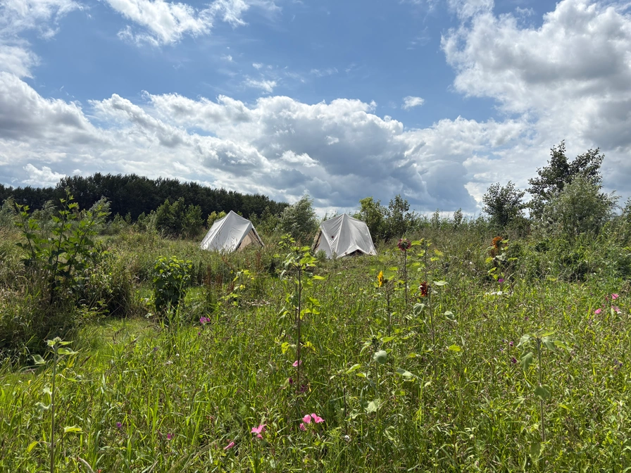 Tucked away on the outskirts of Sneek, behind the city farm, lies a small camping field, surrounded by nature. Nothing straightforward, but organic and naturally landscaped with abundant biodiversity. The campsite is especially suitable for tents, trailer tents, campervans, roof tents, and smaller caravans. There's also space for larger campers (on the paved part of the property). Horses, cows, and chickens live on the farm, and there's a food forest and vegetable garden. Wander around and enjoy the birds (over 75 species!), butterflies, and flowers in the yard.