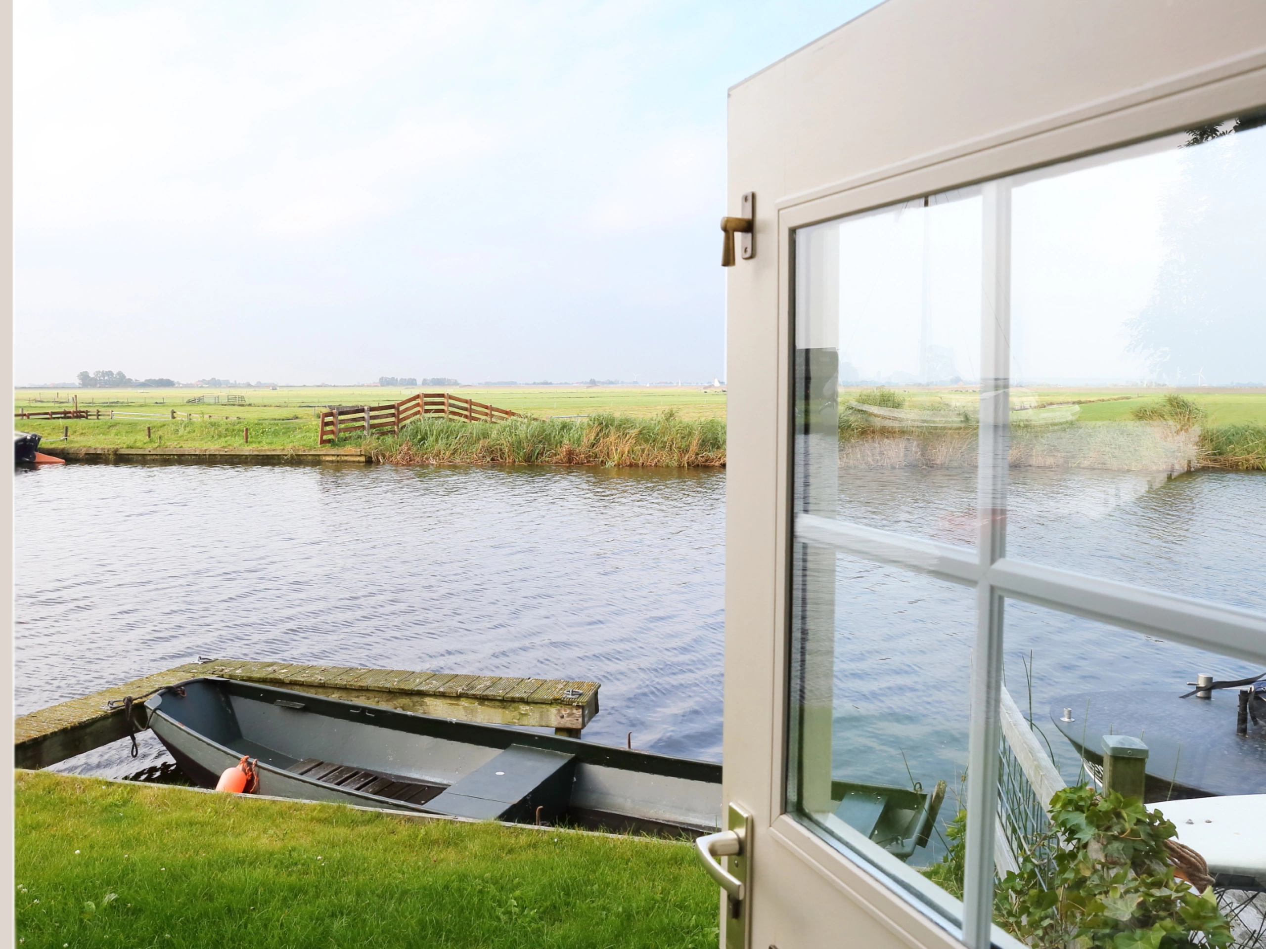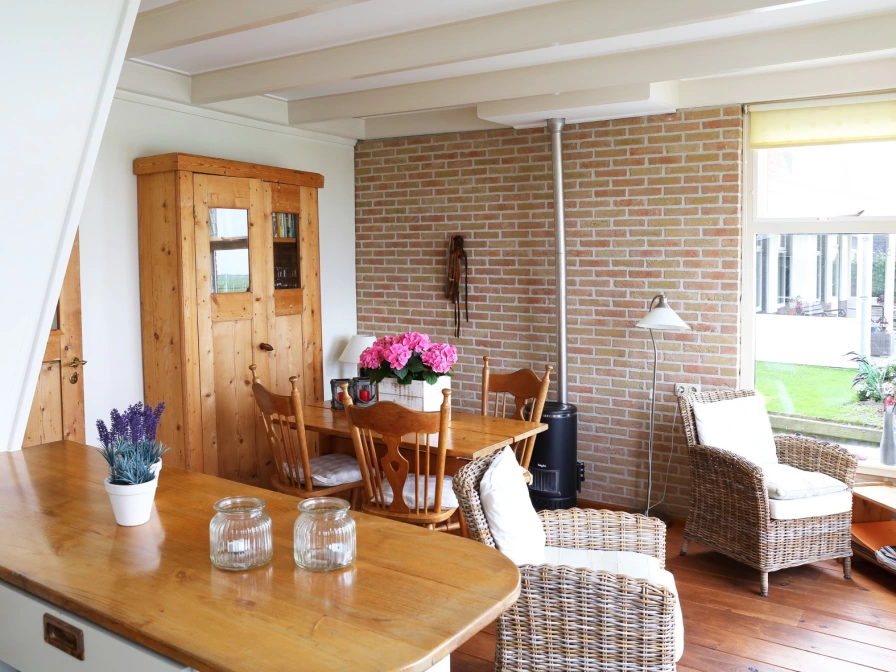 Quietly situated on open water with a beautiful unobstructed view over the water and the meadows, there lies this charming semi-detached holiday home. The holiday home is suitable for 2 adults and 2 children, not for 4 adults. Through the entrance you enter the cozy living room with open kitchen. The kitchen is fully equipped with, among other things, a refrigerator, oven, freezer and electric stove. On the ground floor you will also find the toilet, the bathroom with fixed sink and shower cabin with an adjoining bedroom with a double bed with two single duvets. On the first floor there is another bedroom for two people with two single beds and duvets. There is also a cot available. There is ample closet space. There is no television in the house, but there is a radio and CD player. The holiday home is heated by a gas heater in the living room and bathroom. Around the house you can enjoy the outdoors and optimally enjoy the peace and space!