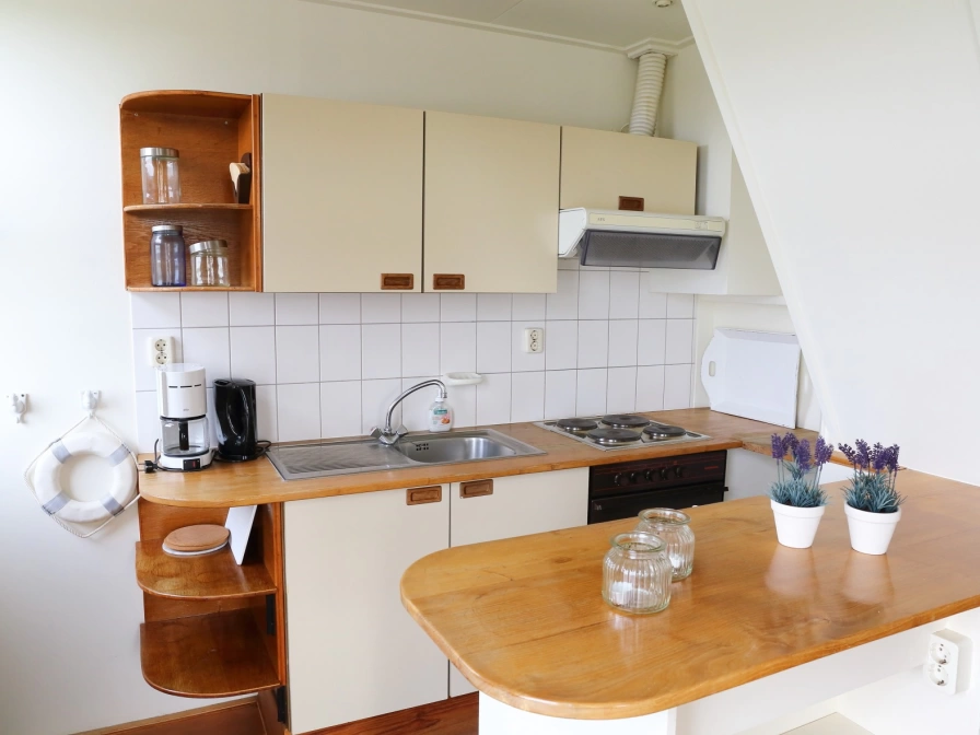 The semi-detached holiday home is located directly on the water in the village of Gaastmeer. Gaastmeer is an ideal place for holidaymakers seeking tranquility. It is enclosed between many pools and lakes. Two restaurants are within walking distance of the house. There is also a supermarket. Gaastmeer is a good base for cycling, walking and sailing trips. Because it is enclosed, the trip over the country quickly starts with one of the two bicycle ferries. In addition, there are endless possibilities for water sports enthusiasts.
