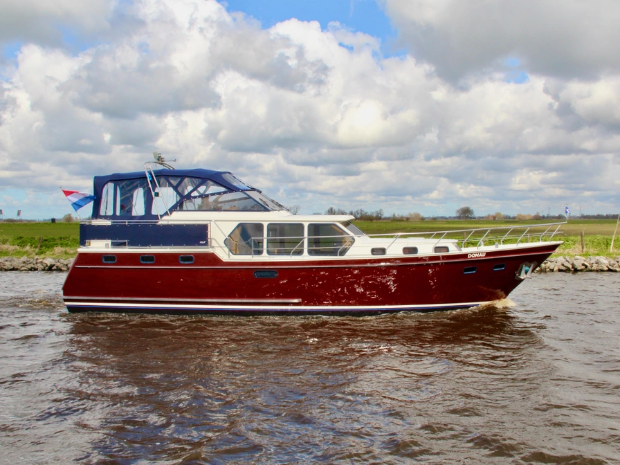 This robust, elegant and luxurious motor yacht is perfect for a family or three couples. Thanks to the powerful 6-cylinder diesel engine and the strong bow and stern thrusters, you can sail effortlessly and comfortably through any sailing area. Layout: In the front you will find a spacious bedroom with a double French bed, and to starboard a second cabin with a double bed. These cabins share a bathroom with electric toilet, shower and sink. The salon is spacious and tastefully furnished with an L-shaped seating area. The fully equipped kitchen has a complete inventory for 8 people, and the dinette can be converted into an extra double berth. In the aft cabin there is a spacious bedroom with a double French bed, a dressing table, a second electric toilet and a separate bathroom with shower and sink. On the large aft deck you can enjoy a fixed bench, an XL convertible tent, steering position and solar panel. Via the integrated spiral staircase you can easily walk to the swimming platform, where you can easily get on and off the boat. Here you will also find an outdoor shower for after swimming. Please note: if you have no sailing experience, sailing instruction is mandatory.