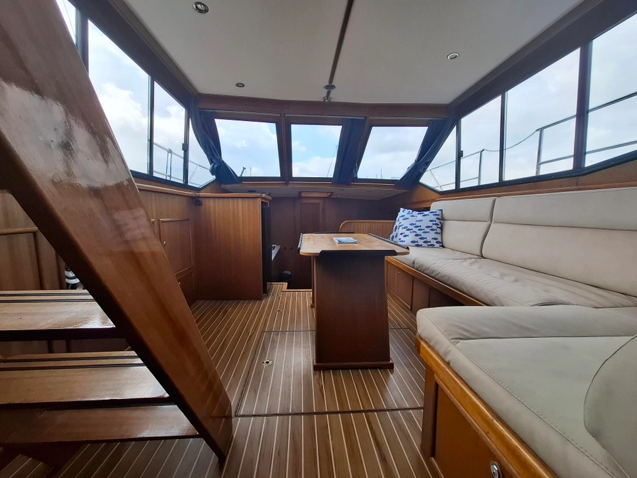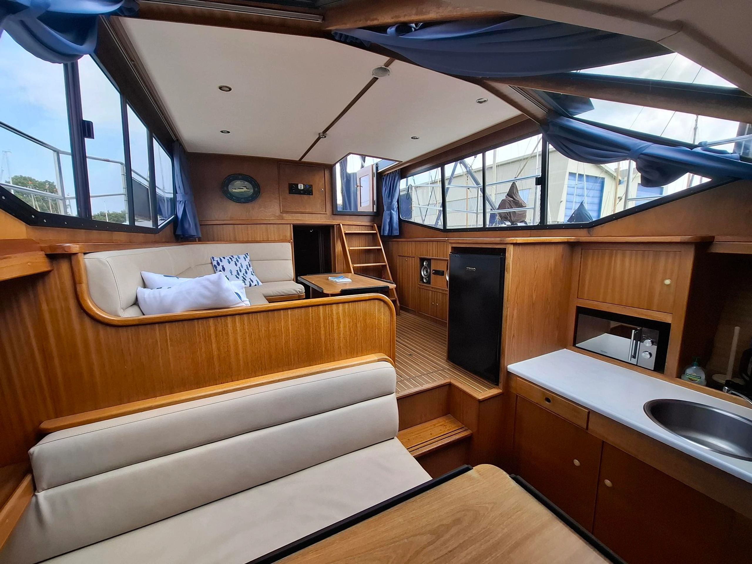 This spacious, comfortable six-person motor yacht is equipped with, among other things, a bow and stern thruster. There is also a spacious seating area, dining area and kitchen. The dining area can be converted into a double bed. In addition, in the aft cabin of the motorboat there is a spacious double room with its own sink. There is also a double bedroom at the front of the boat. At the back of the boat is an electric toilet, sink and shower. Dimensions: 11.40 x 3.80 x 1.0 meters