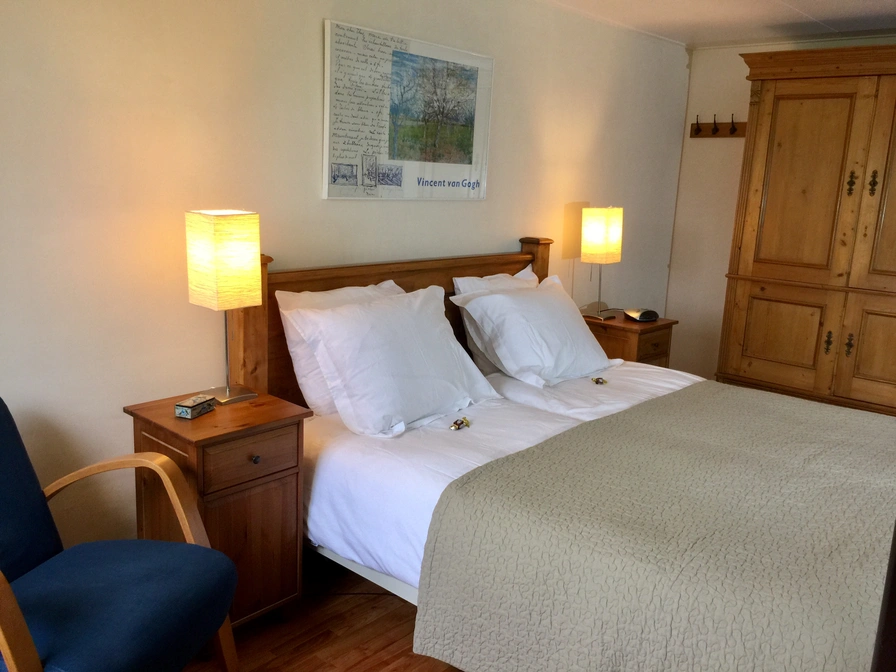 This luxurious double room is decorated with the painter Van Gogh as a theme. You can relax wonderfully on the spacious Auping twin bed, of which you can adjust both the head and foot ends. The room has a comfortable sitting area and table with chairs and there is also a flat-screen television. In your own private bathroom you will find a sink, shower and toilet. You do not need to bring towels, they will be ready for you upon arrival! To book a room at this B&B, you must contact the owner directly.