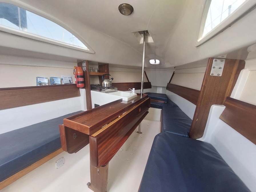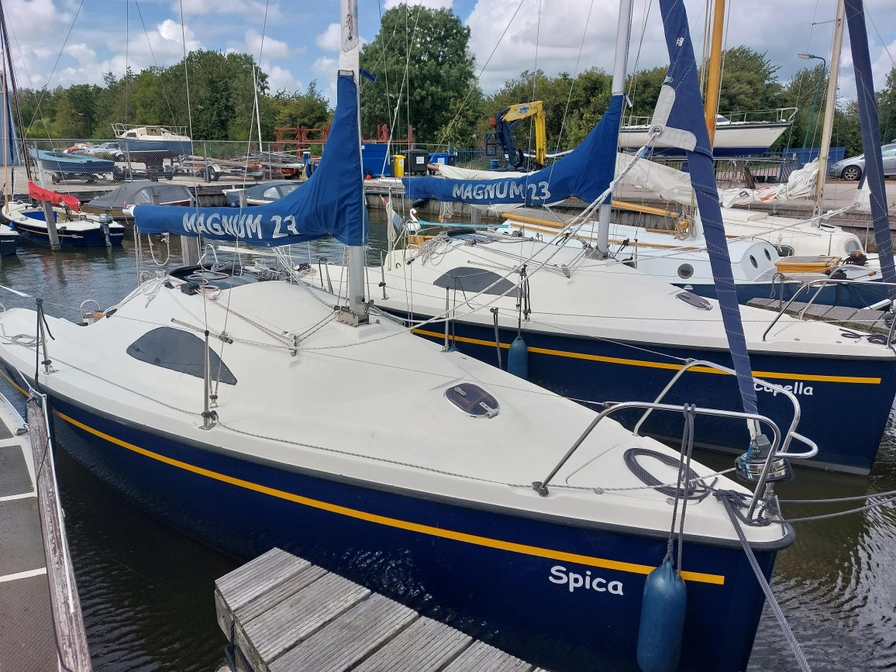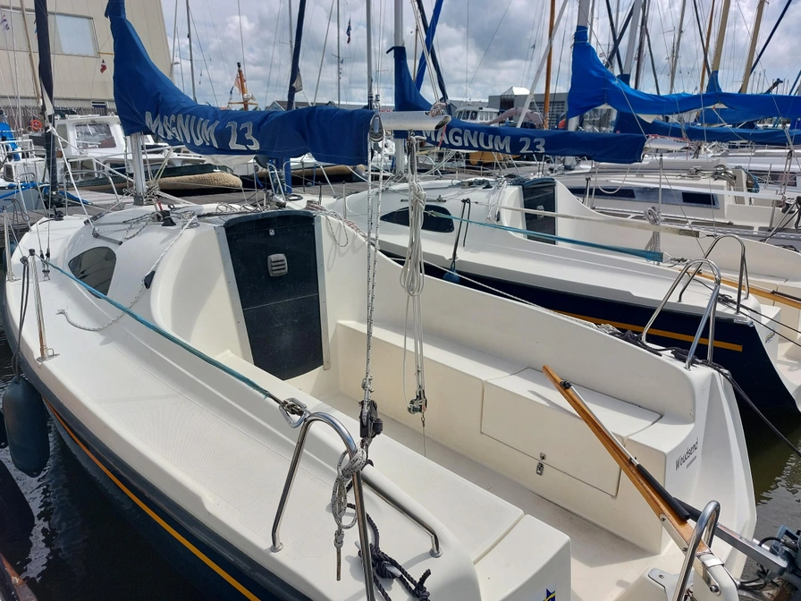 The Magnum 23 is a sporty and easy to sail cabin sailboat. There are four sleeping places for adults on board, all in the same room. The interior is sleek and simple. The small galley has a two-burner stove and water. Size: 7.05 x 2.5 x 0.9