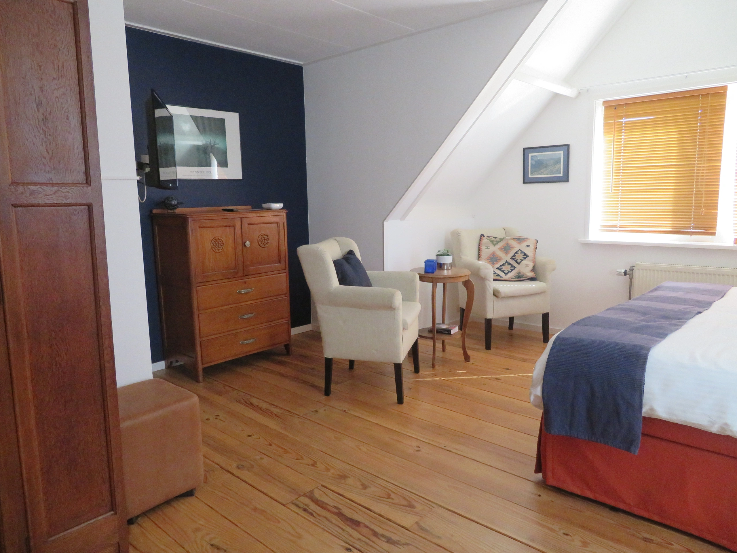 B&B 7de Hemel is quietly situated on the edge of the Frisian village of Hemelum. Surrounded by the cliffs of Gaasterland, the location offers a combination of nature and tranquility. In the immediate vicinity you will find numerous cycling and walking routes that lead you along the bird-rich areas, the IJsselmeer and cities such as Hindeloopen and Stavoren. Oudemirdum, a charming village with cozy terraces, is also nearby.