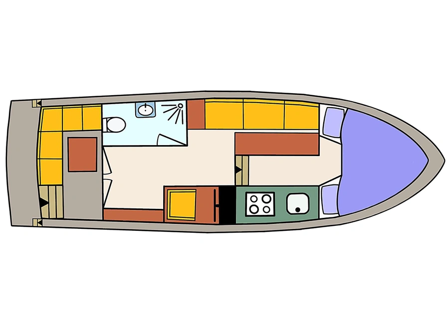 The IJssel Elite is a cozy motor yacht for two people with a cozy sitting area, kitchen, fixed bed and separate bathroom with shower and toilet. Everything is compact and comfortably furnished. Outside there is a small aft deck to sit and enjoy the water.