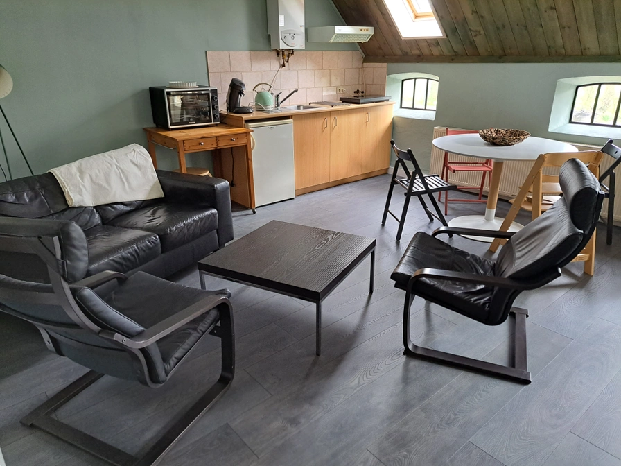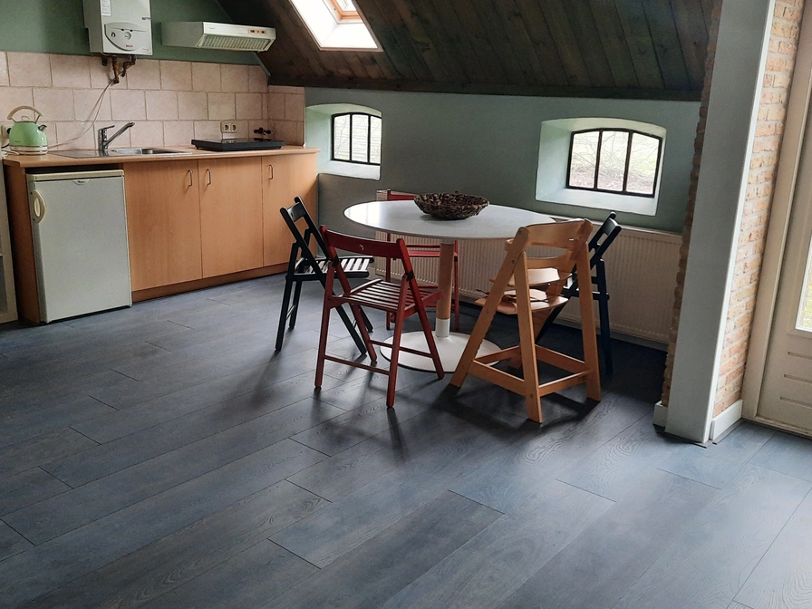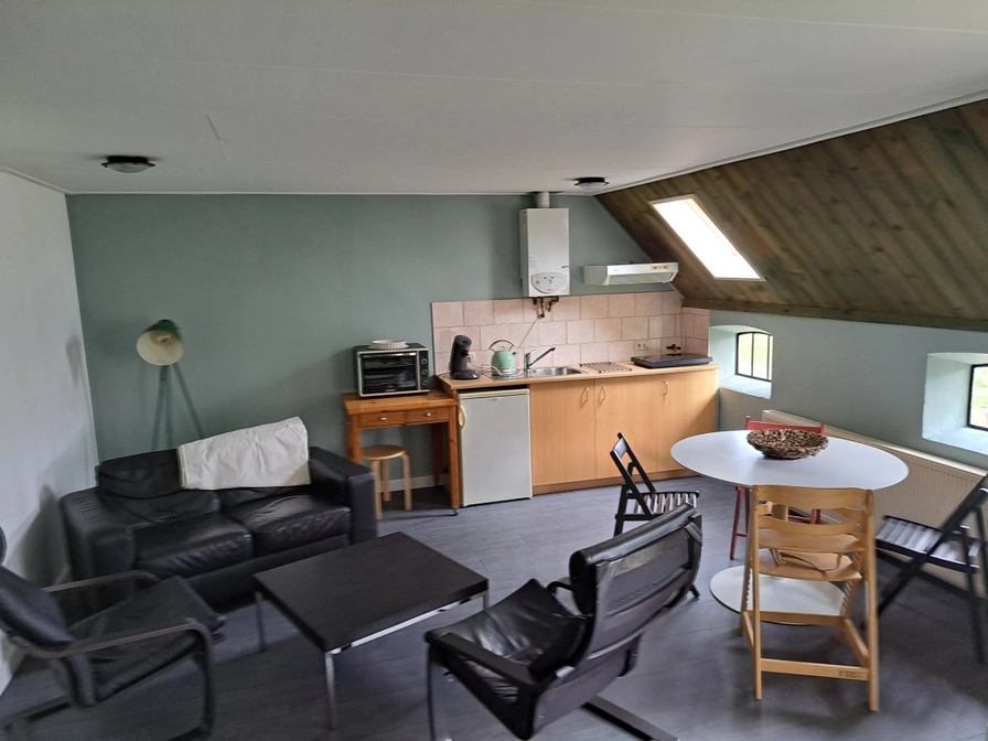 Geniet van rust, ruimte en de natuur vanuit dit vakantiehuisje. Gesitueerd in een voormalige boerderij en kleine camping kun je hier optimaal tot rust komen. De woning heeft een open woonruimte met zit- en eethoek en keuken. De keuken beschikt onder andere over een koelkast en elektrische kookplaat. De vakantiewoning heeft een eigen badkamer met douche, toilet en wastafel. Beide slaapkamers bevinden zich op de eerste verdieping. De eerste slaapkamer beschikt over een tweepersoonsbed en de tweede slaapkamer heeft twee eenpersoons bedden.