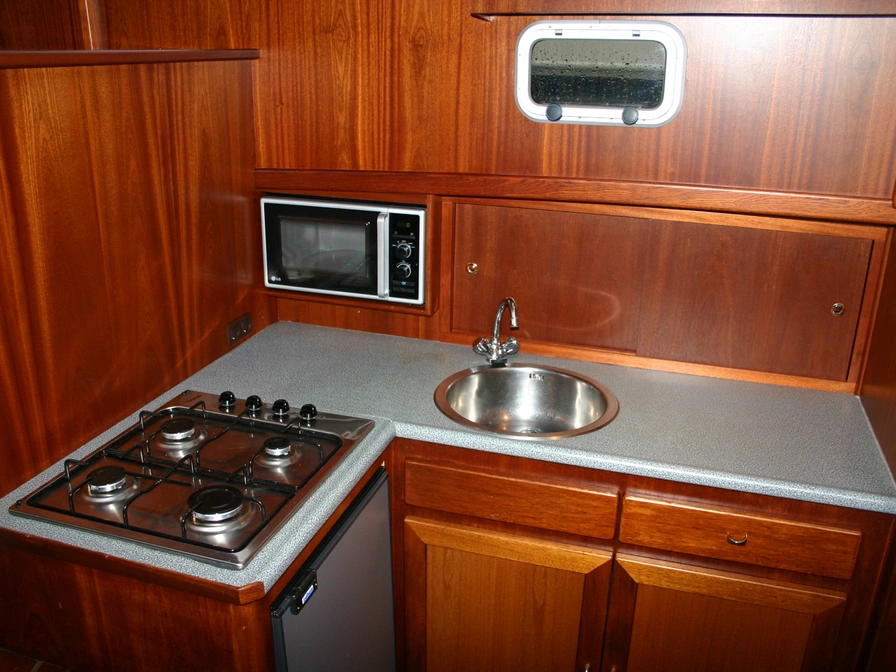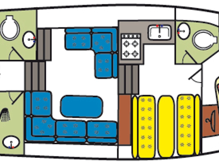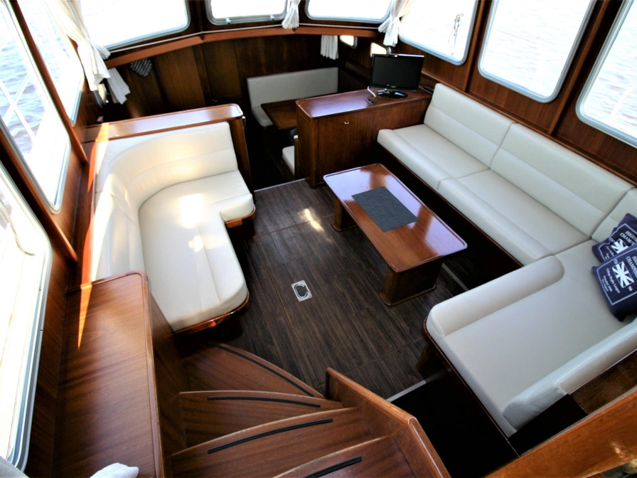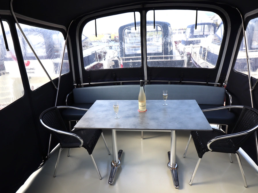 Dit ruim opgezette motorjacht vaart uitstekend en biedt volop leefruimte voor 6 personen. Het schip is comfortabel en gezellig ingericht en daarmee perfect voor gezinnen of drie stellen. Indeling: Voorin vind je een afgesloten slaapkamer met een tweepersoonsbed en een eigen elektrisch toilet. De ruime keuken is van alle gemakken voorzien met een 4-pits kooktoestel, magnetron, koelkast en een complete inventaris voor 8 personen. De dinette kan worden omgebouwd tot een extra tweepersoons slaapplaats. In de salon geniet je van een gezellige zithoek. In de achterkajuit bevinden zich nog twee slaapkamers: één met een tweepersoonsbed en één met twee eenpersoonsbedden. De badkamer beschikt over een douche en wastafel, en er is een extra, apart elektrisch toilet. Buiten vind je een groot zonnedek met stuurstand, zonnepaneel, XL-cabriotent, vaste zitbank, dekstoelen en een tafel. Via de geïntegreerde wenteltrap loop je eenvoudig naar het zwemplateau met zwemtrap – ideaal om aan of van boord te stappen of voor een frisse duik. Let op: heb je geen vaarervaring? Dan is een vaarinstructie verplicht.