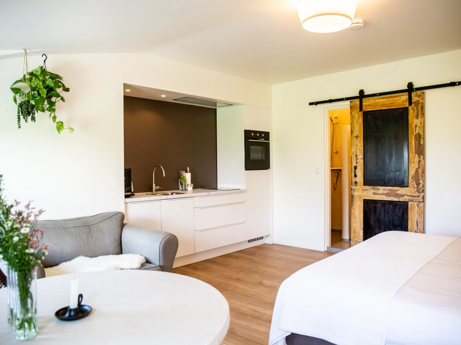 De appartementen zijn gevestigd in een verbouwde boerderij. Ieder appartement heeft een eigen ingang en terras, vanwaar je uitzicht hebt over groene weilanden met schapen en vogels. Binnen kun je je fiets veilig stallen. Het is mogelijk de Finse privé sauna te huren op koudere dagen. Voor het reserveren van deze accommodatie dien je rechtsreeks met de verhuurder contact op te nemen.
