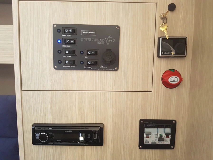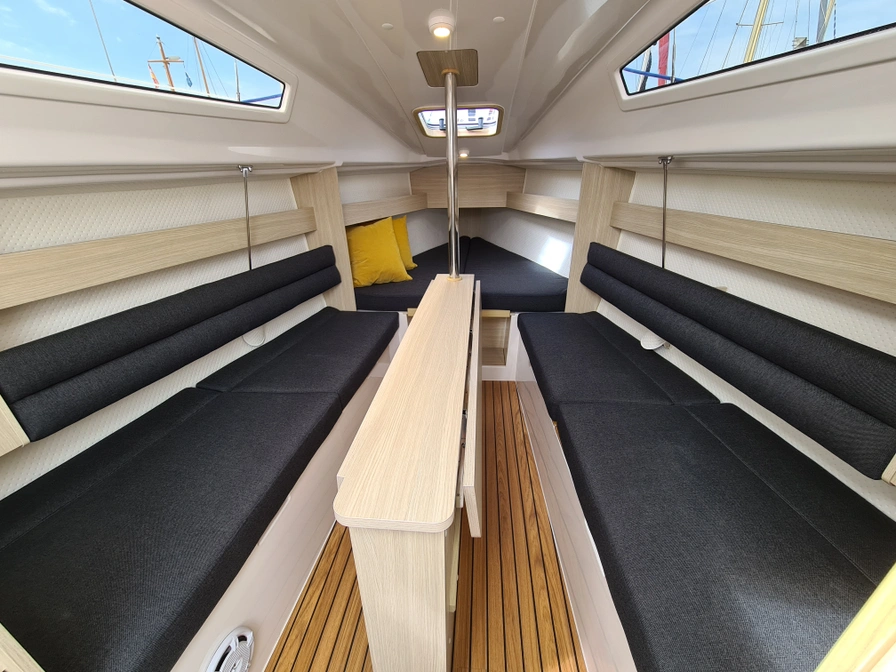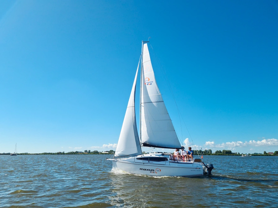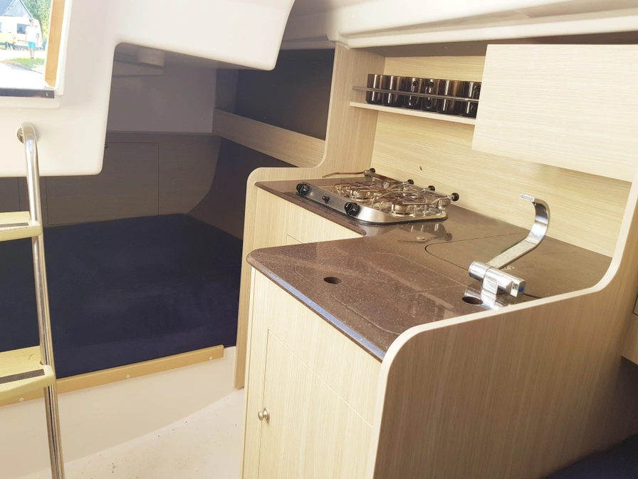De Maxus Evo 24 is slim en comfortabel ingedeeld, met een verrassend ruim interieur voor een boot van dit formaat. Binnen vind je vier vaste slaapplaatsen, een gezellige zitruimte met een tafel en banken. De kombuis is voorzien van een tweepits kooktoestel, een gootsteen met koudwaterkraan en een basis keukeninventaris in de kastjes.