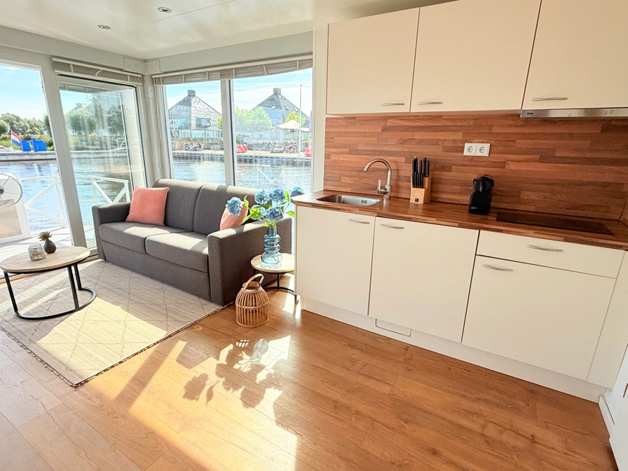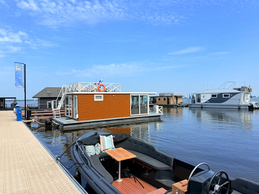 Deze Huisboten (houseboats) liggen aangemeerd aan open water, in Huisboothaven Waterrijck Sneekermeer (bij Beachclub Sneek). Slechts 10 minuten rijden van de bekende stad Snits, oftewel Sneek! Je geniet van werkelijk een fenomenaal vrij uitzicht over één van de bekendste Friese meren. Gelegen aan prachtige fietsroutes. Bij het nabijgelegen RCN vakantiepark de Potten kun je o.a. fietsen huren. Wil je zelf een bootje huren, of heb je geen zin om te koken aan boord? Dan ga je heerlijk borrelen of uit eten in de Huisboothaven bij het nieuwe paviljoen Beachclub Sneek. Wil je méér avontuur? Bezoek dan het bekende starteiland (via de pont op 5 minuten loopafstand) of ga naar Strand Sneek. Pure fun voor jong & oud vind je op een paar minuten loopafstand. Laat je verrassen met door de Waterskibaan, gezellige horeca, het nieuwste Aquapark & meer.