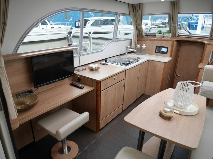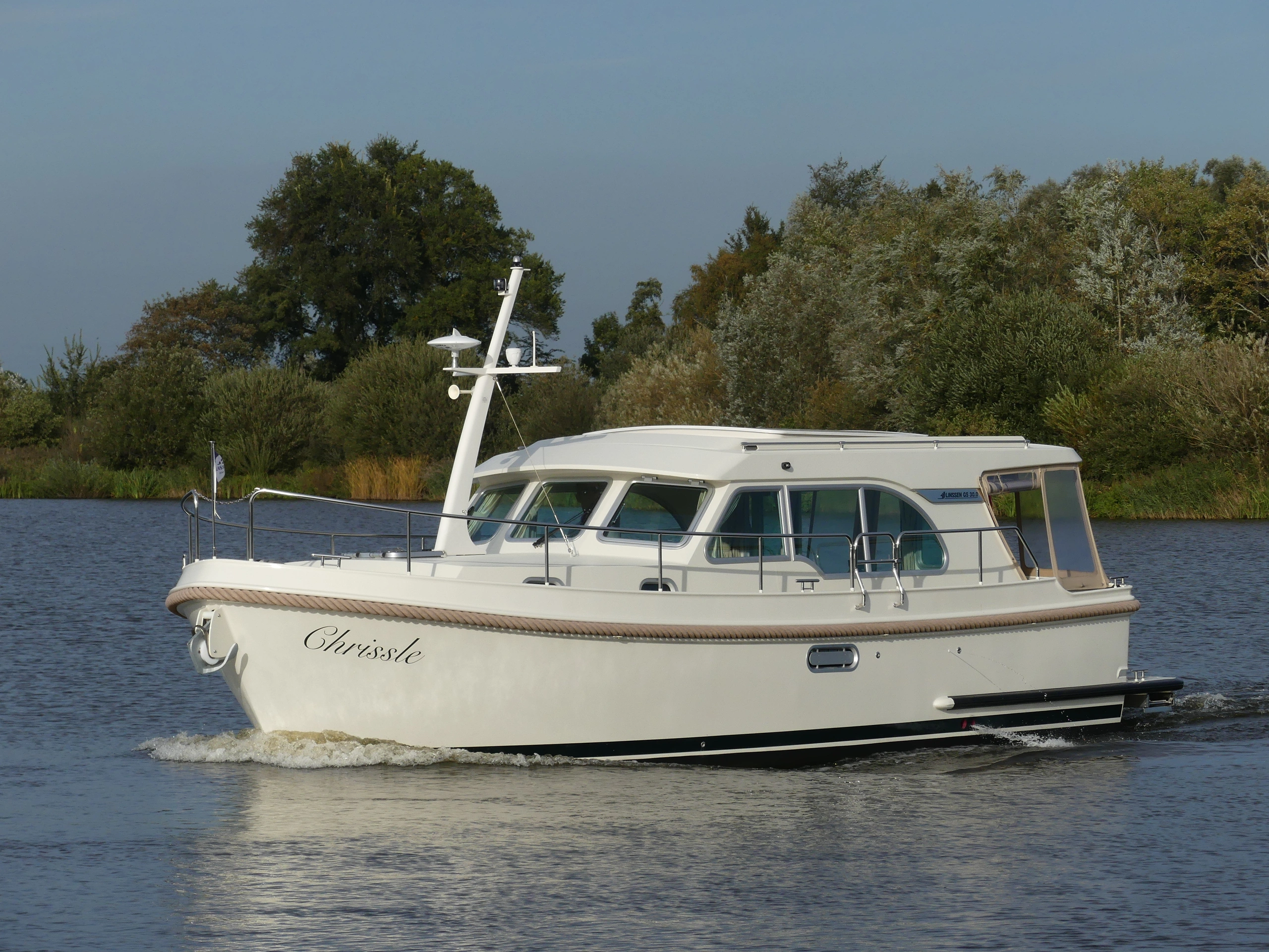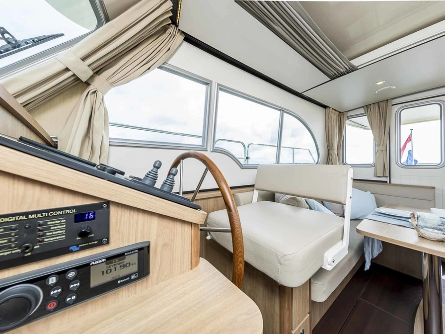 Deze luxe en zeer compleet uitgeruste motorboot huur je vanuit Sneek. Een ideaal jacht voor het varen over de Friese meren, met haar lage doorvaarthoogte (2.40 meter) bereik je de allermooiste bestemmingen. Dit schip is geschikt voor 2 personen. Deze Linssen Grand Sturdy 30.0 Sedan beschikt over veel doordachte details o.a. elektrisch verstelbaar Variodeck schuifdak, verwarmde en afsluitbare) kuip. Stijlvolle salon met veel (dag)licht afgewerkt in prachtige lichte kleurstelling. Zeer uitgebreid besturing- en navigatiesysteem en boeg- en hekschroef. Ruime eigenaars hut met heerlijk bed en separate douche en sanitaire ruimte. Lengte: 10.0 mtr. - breedte: 3.5 mtr. - diepte: 1.0 mtr. - doorvaarthoogte: 2,45 mtr. (met gestreken mast(!)
