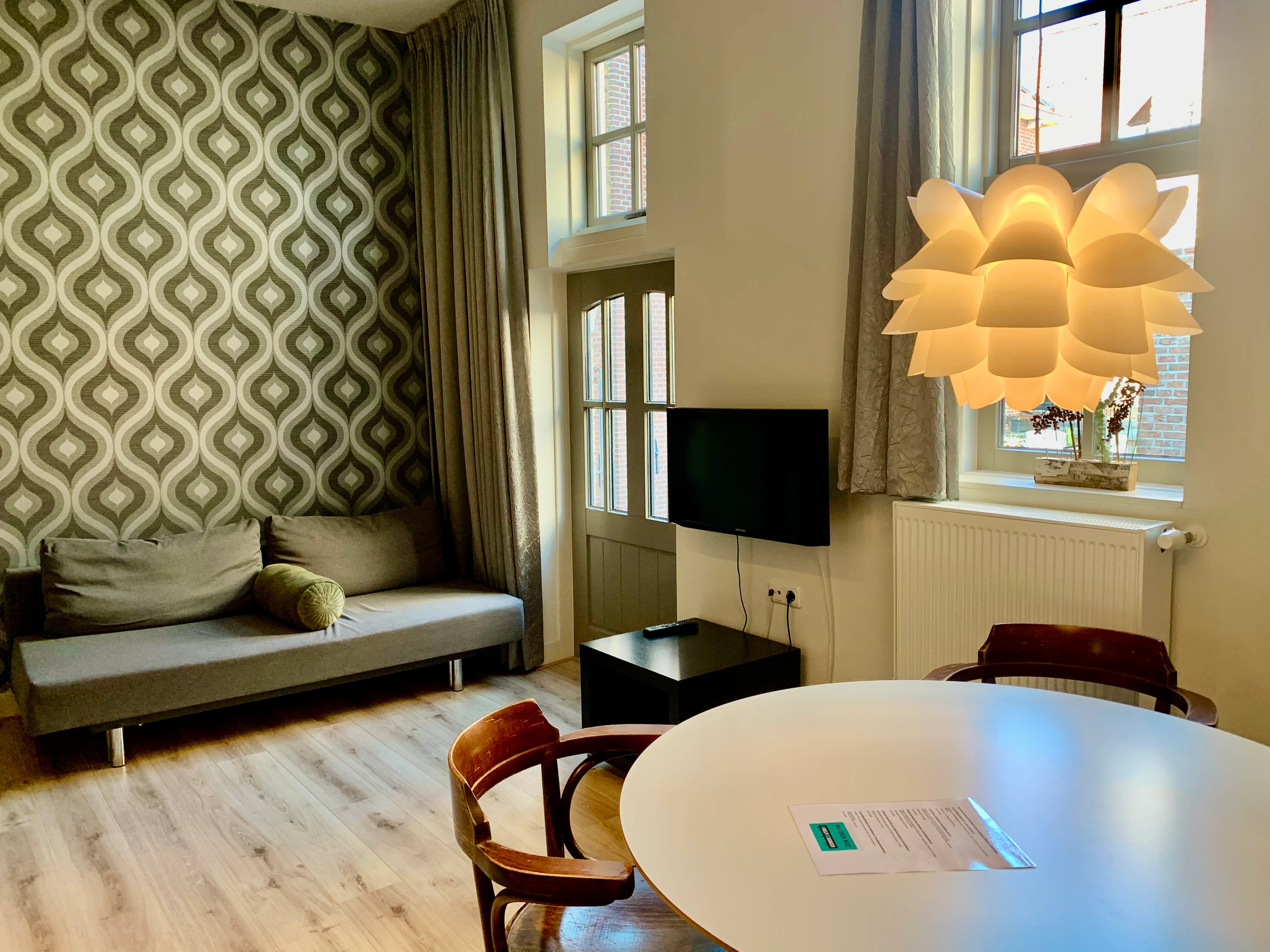 In het centrum van Sneek vind je dit fijne appartement. Het appartement heeft een eigen badkamer met regendouche en apart toilet. Er is een slaapkamer in dit standaard appartement, deze is voorzien van een tweepersoons boxspringbed. In de ruim opgezette woonkamer staat een bank of 2 fauteuils, eettafel met stoelen en een goed uitgeruste keuken. Deze keuken is van alle gemakken voorzien met onder andere een combi-oven en koelkast.