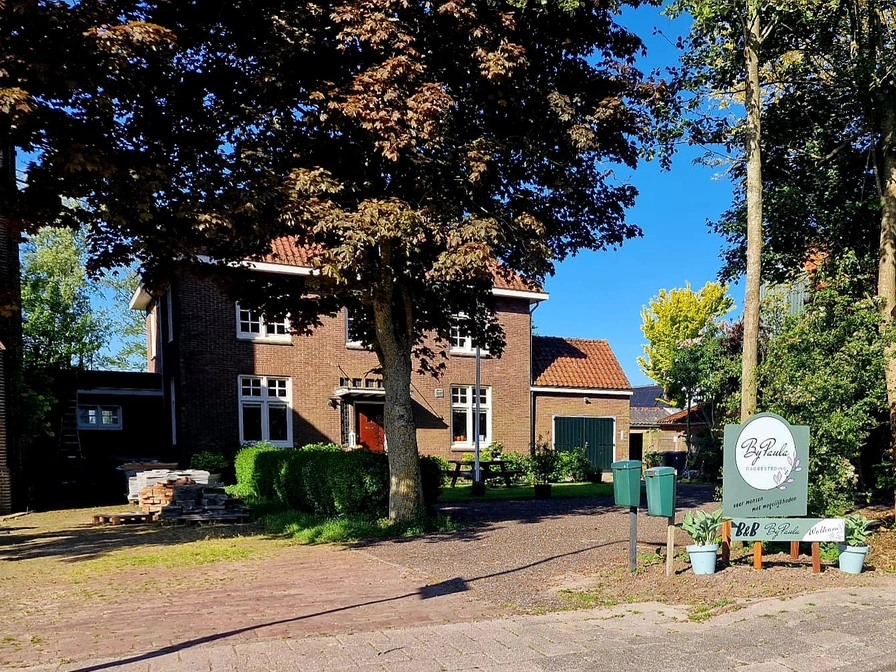 Wat deze B&B uniek maakt is dat het doordeweeks ook een dagbestedingsplek is voor mensen met een verstandelijke beperking. Zij treden op als gastheer/vrouw, wat zorgt voor een warme en persoonlijke sfeer. ByPaula is een plek waar iedereen meetelt B&B ByPaula ligt in Easterwierrum, een charmant Fries dorpje tussen Leeuwarden en Sneek, gelegen aan de beroemde Elfstedenroute. En ook de historische Slachtedyk loopt door het dorp. Omringd door uitgestrekte weilanden en op korte afstand van de Friese meren, is dit de ideale plek voor rustzoekers, wandelaars en fietsliefhebbers. In de directe omgeving vind je prachtige fietspaden en verassend veel lokale eetgelegenheden waar je kunt genieten ven streekproducten.