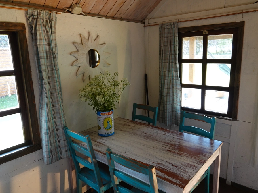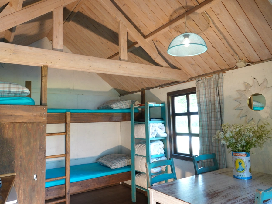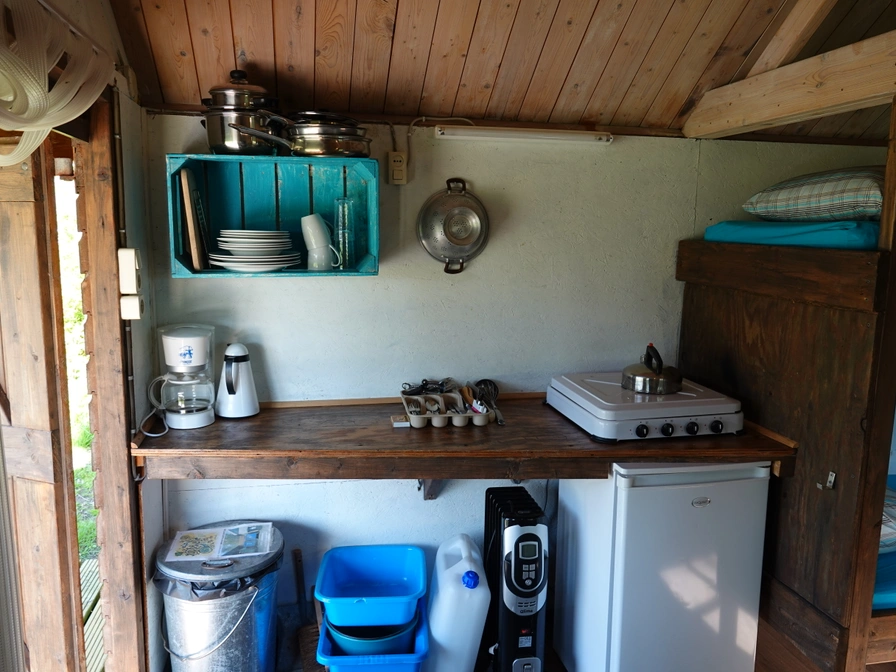 De knusse trekkershut is perfect voor iedereen die iets meer luxe wil dan in een tent. De trekkershut is uitgerust met twee stapelbedden, een keukentje en een tafel met vier stoelen. Het sanitair bevindt zich op loopafstand. De trekkershut is voorzien van een fijn terras met grote picknicktafel en een barbecue.
