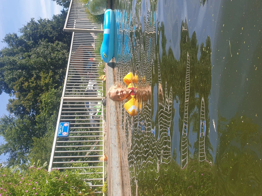 Op de kleinschalige camping is een natuurzwembad aanwezig, waar je heerlijk kunt zwemmen tussen de prachtige planten en onder de bloesem van de oude fruitbomen. Voor de kinderen is het genieten in de zandbak, boomhut en of op de trampoline.