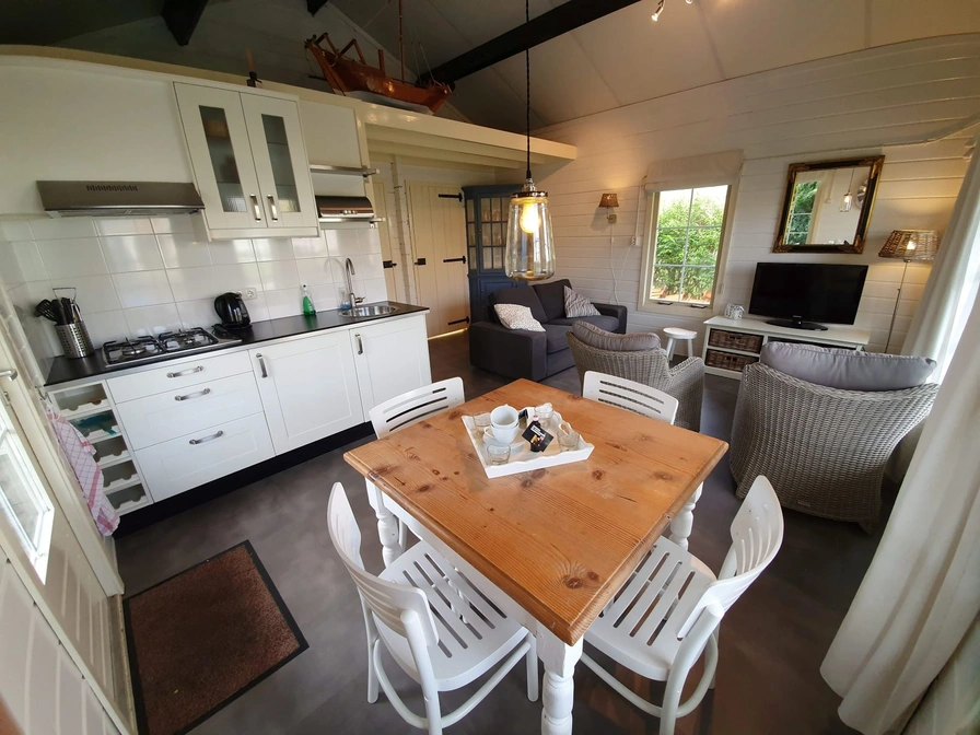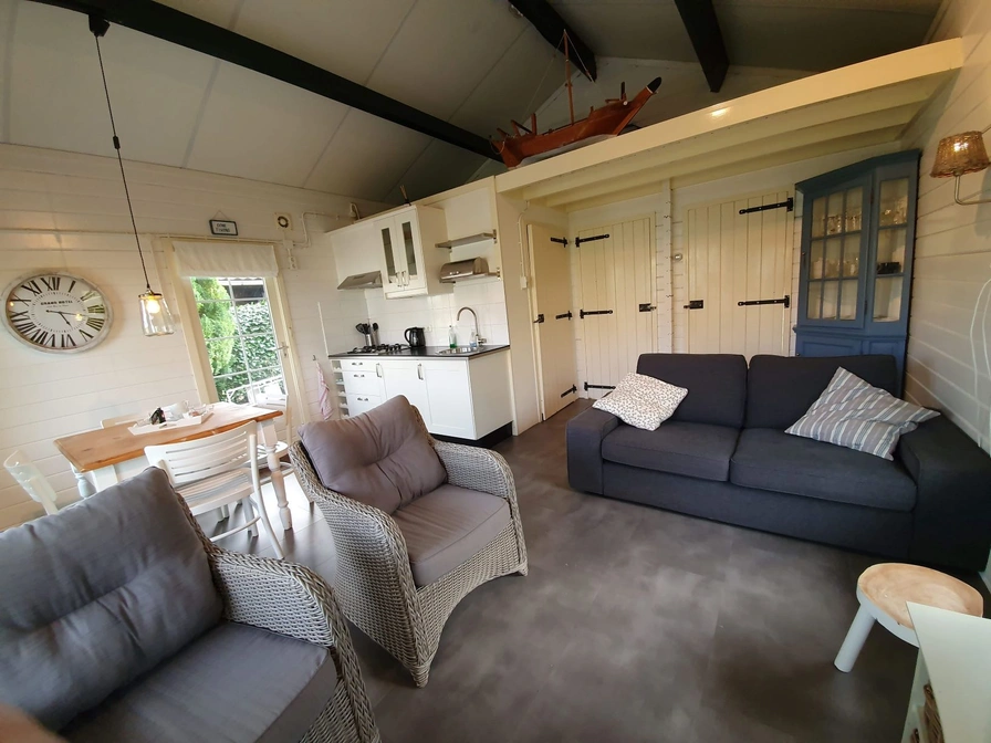 Vakantiewoning de Jonge Jelle is een aangenaam vierpersoons chalet gelegen aan het water. Vanuit de ruime tuin loop je zo naar je (gehuurde) boot of spring je in het water voor een verkoelende duik. In de tuin kun je zowel in de zon of in de schaduw zitten en ook staat hier een barbecue klaar. De woning heeft een kleine keuken waar je tijdens je vakantie perfect kunt koken. De woon- en eetkamer zijn knus, maar bieden voldoende ruimte om te zitten of te ontspannen na een dag Friesland ontdekken. In de badkamer vind je een wastafel, douche en toilet. De badkamer is basic, maar goed. Er zijn twee slaapkamers in het chalet, in de ene slaapkamer staan twee eenpersoons boxspringbedden en in de andere slaapkamer vind je een echte bedstee!