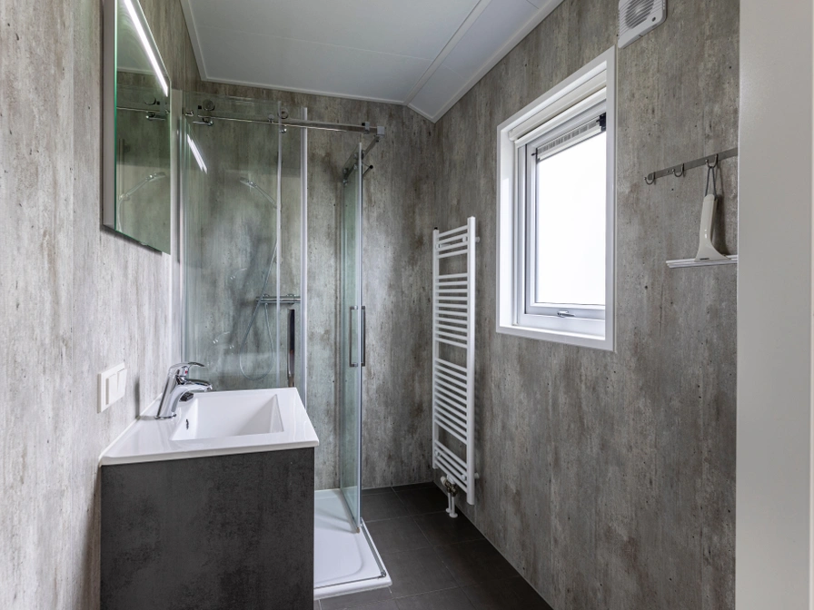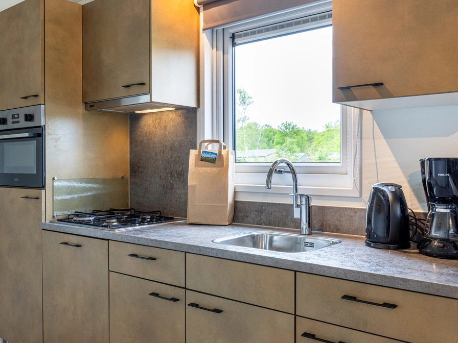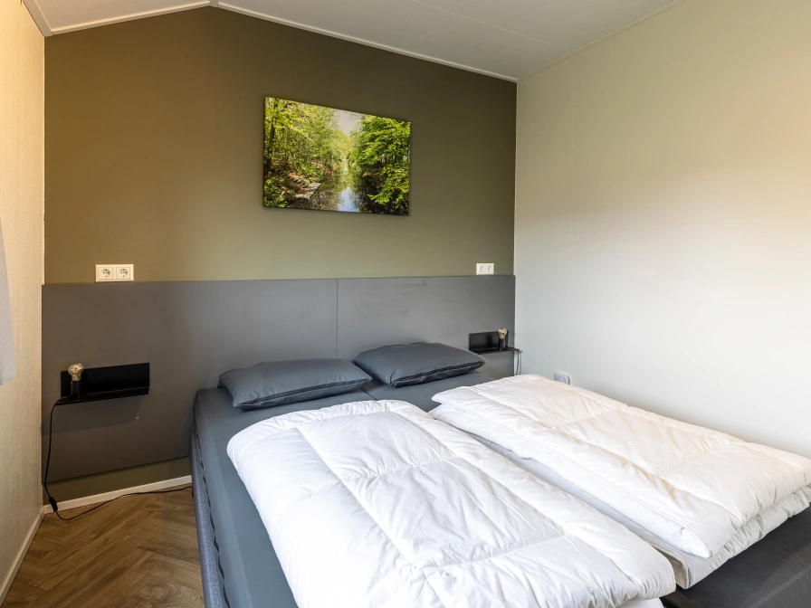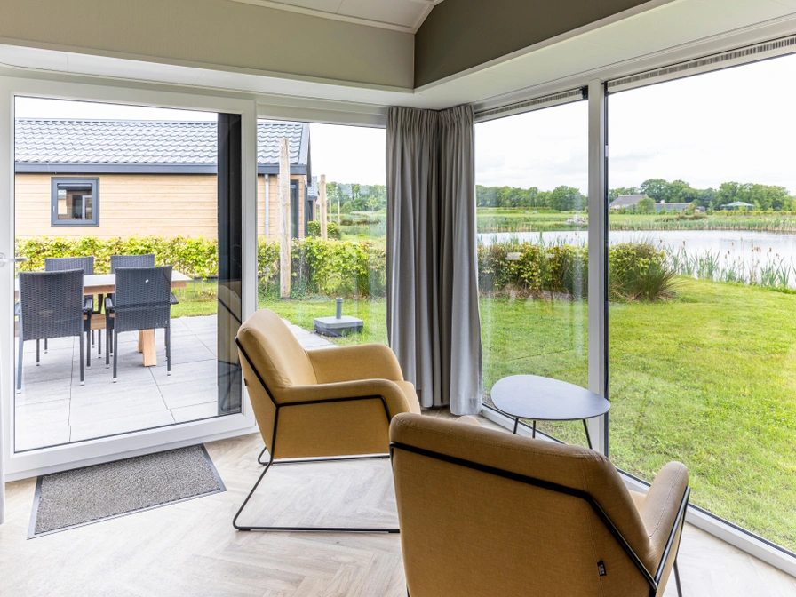 Dit chalet is ruim opgezet. Je kunt genieten van een ruime woon- en eetruimte met uitzicht op de vijver of landerijen middels een grote raampartij met schuifpui. De keuken is goed uitgerust en leent zich voor een avond uitgebreid kokkerellen. Het chalet heeft een grote slaapkamer en twee kleinere slaapkamers met eenpersoons bedden, waarvan een een stapelbed is. In de badkamer vind je de douche, evenals een wastafel met opbergruimte. Er is een separaat toilet. Rondom het chalet vind je de ruime tuin en er is een groot terras met tuinmeubilair vlakbij de woonkamer. Zo kun je optimaal genieten van binnen en buiten!