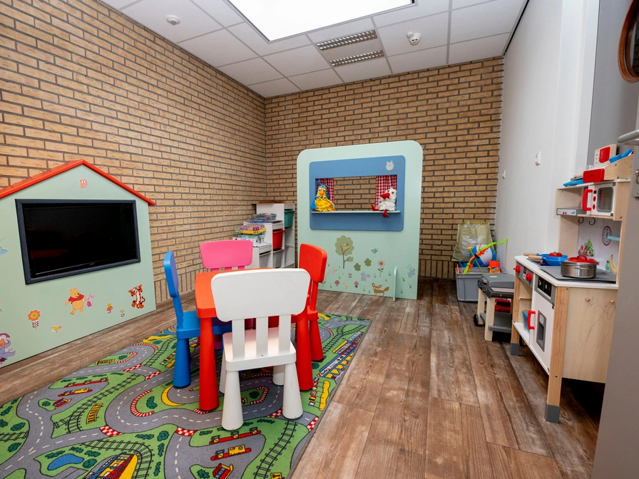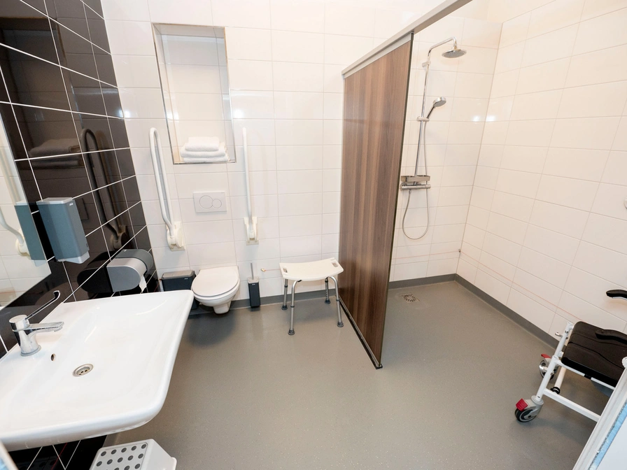 Deze grote groepsaccommodatie heeft 16 slaapkamers die geschikt zijn voor 2-4 personen per kamer. In totaal kunnen er 48 personen in de groepsaccommodatie logeren. De slaapkamers zijn verdeeld over drie afzonderlijke compartimenten waardoor deze accommodatie ook zeer geschikt is voor kleinere groepen. Er wordt dan een compartiment afgesloten zodat de accommodatie iets kleiner wordt. Iedere slaapkamer heeft een eigen badkamer met douche, toilet en wastafel. Daarnaast zijn er ook nog twee separate toiletten. Er zijn diverse woonruimtes die sfeervol ingericht zijn. Zo is er een ruime woonkamer met knusse zithoek en openhaard, maar er is ook een chill-game kamer met spelletjeskast en een speelkamer voor de kleinere kinderen. De grote keuken is volledig ingericht met een inventaris voor 48 personen en heeft tevens een groot elektrische kookplaat met 6 pitten, een oven, vaatwasser en ruime koelkast. Rondom de groepsaccommodatie is een ruime tuin met voetbalveld en zandbak. De tuin is helemaal omheind waardoor het voor kinderen veilig is om buiten te spelen. Daarnaast is er een grote overdekte veranda met buitenkeuken. Goed om te weten: de accommodatie is volledig aangepast voor mindervaliden. Zo is er een aangepaste badkamer met toilet, brede deuren, een lift en is de accommodatie volledig drempelloos!