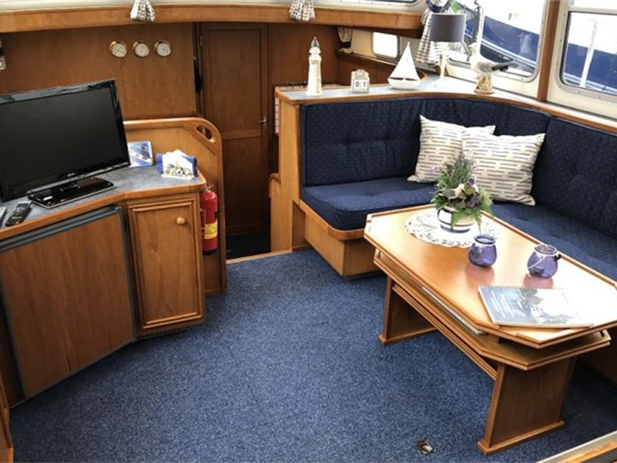 Deze Klompmaker Kotterjacht heeft een capaciteit voor 8 personen. De boot heeft een slaapkamer met een tweepersoonsbed voor en de drie andere slaapkamers achterin beschikken over een stapelbed. Hierdoor is deze boot onder andere uitermate geschikt voor een familie met kinderen of voor een vriendengroep. De boot is gemakkelijk te bevaren met boeg- en hekschroef. Hierdoor kunnen zowel ervarne schippers als beginnende bootvaarders Friesland ontdekken met deze mooie boot. De boot is van alle gemakken voorzien met voorin een douche + toilet en achterin een aparte douche en apart toilet. In de ruime salon kun je gezellig zitten om te eten en te drinken met z'n allen. Tevens is de boot uitgerust met het volledige inventaris. Geen of slechts een beetje vaarervaring? Boek dan onze schippertraining om vertrouwd met de boot op pad te kunnen gaan en geniet van jouw vaarvakantie op de Friese wateren!