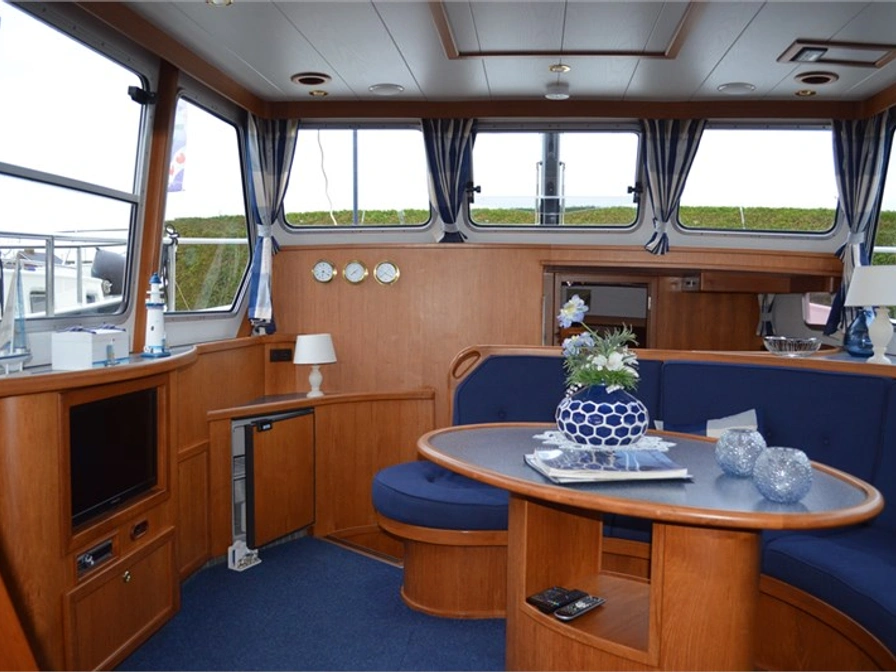 De hele crew kan plaatsnemen op het ruime achterdek van deze kotterjacht. Ga jij Friesland ontdekken met onze 'Helena', 'Veroniek', 'Michelle' of 'Jeanette'?