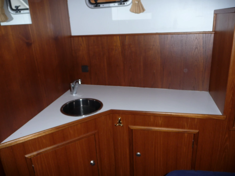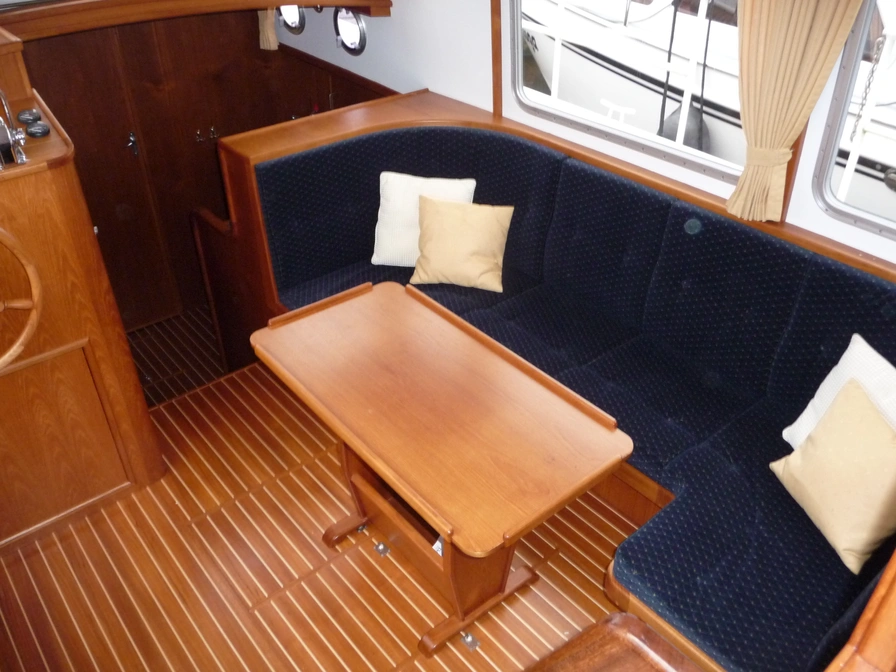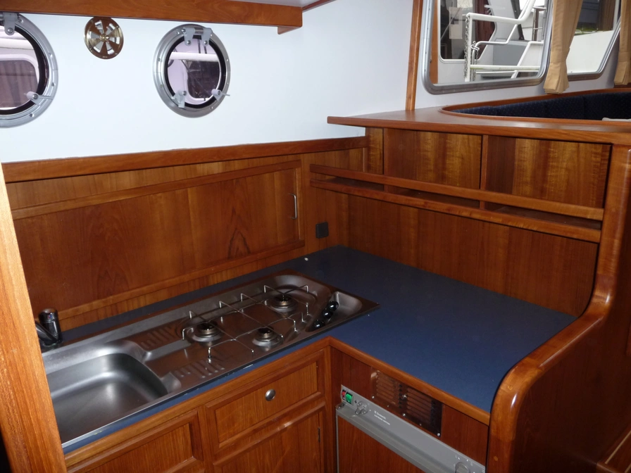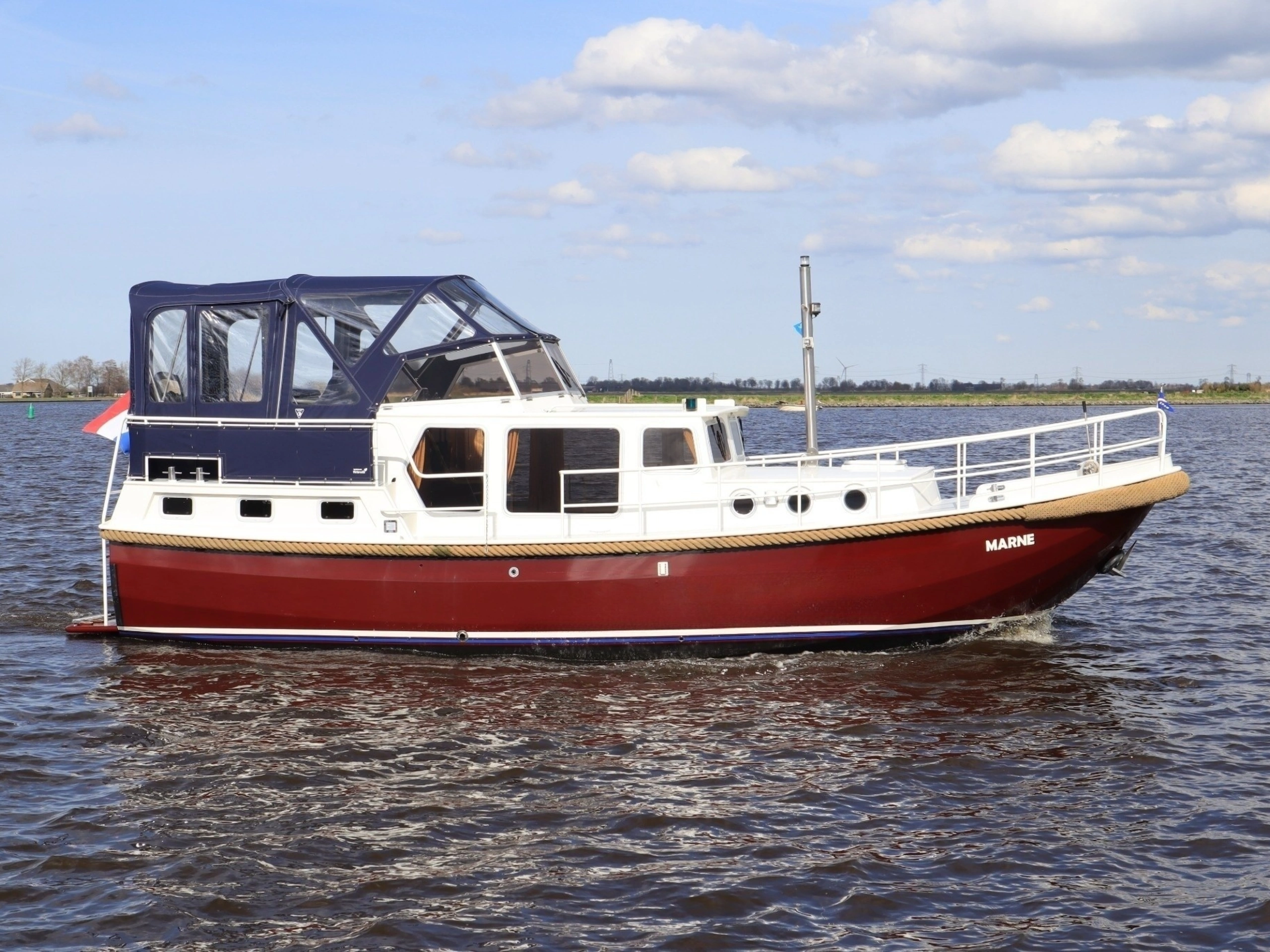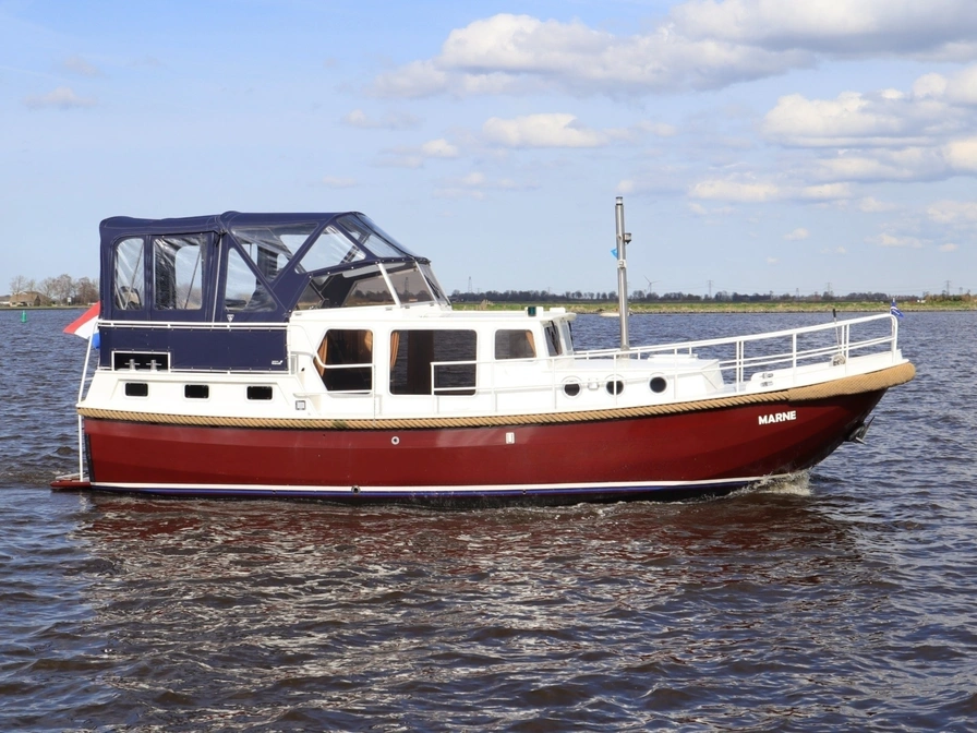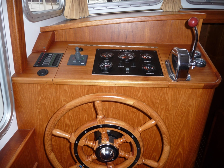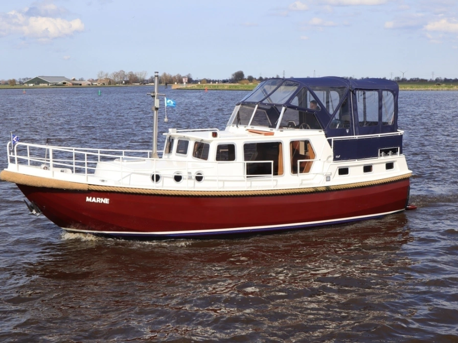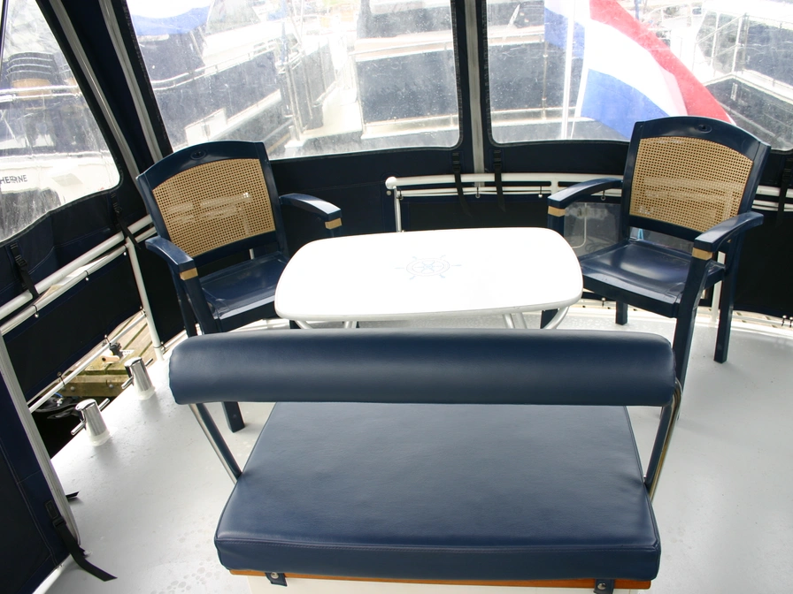 Klassiek gelijnd motorjacht met uitstekende vaareigenschappen en een extra grote cabriotent die het hele achterdek overkapt. Je hebt volop leefruimte aan boord, ideaal voor een comfortabel verblijf met 4 personen. Indeling: In de voorkajuit vind je een afgesloten tweepersoonshut met bergruimte, een douche, elektrisch toilet en wastafel. De keuken is uitgerust met een 3-pits kooktoestel, koelkast en complete inventaris voor 4 personen. De salon heeft een gezellige zithoek en stuurstand. Achterin bevindt zich een ruime tweepersoonshut met een extra wastafel en voldoende bergruimte voor extra comfort en privacy. Op het zonnedek geniet je van een tweede stuurstand, GPS, zonnepaneel, XL-cabriotent, dekstoelen, tafel en een zwemplateau met zwemtrap. Dankzij de boeg- én hekschroef manoeuvreer je eenvoudig. Heb je nog geen vaarervaring? Dan is een vaarinstructie verplicht.
