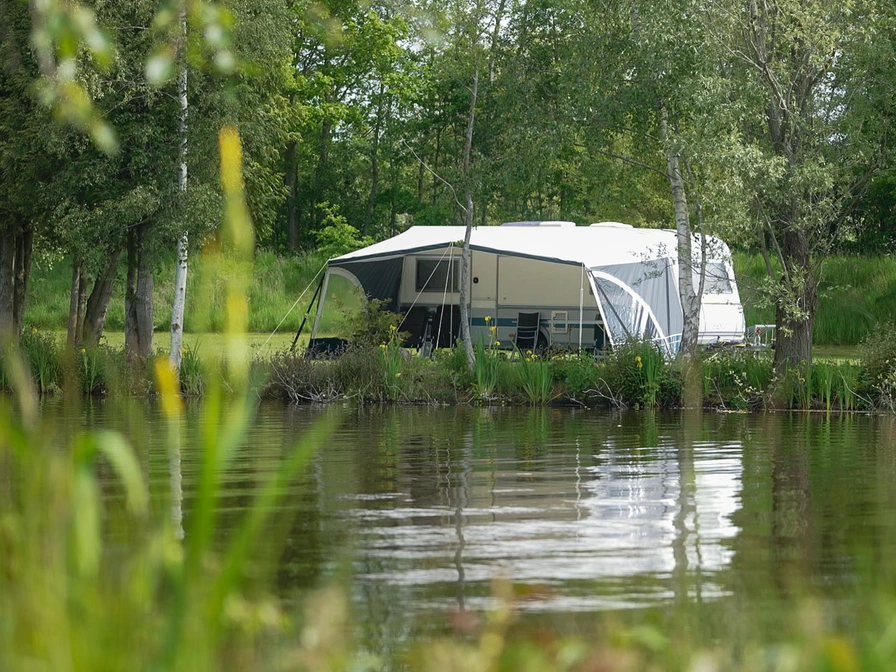 Kampeerplaats met privé sanitair Deze kampeerplaatsen beschikken over een compact sanitair gebouw met een eigen douche, toilet en wastafel direct bij uw kampeerplaats! De kampeerplaats met privé sanitair is zeer ruim 160-180m2 en heeft een prachtig uitzicht over onze (zwem)vijver. Verder beschikken deze plaatsen over 10 ampère stroom en is er een water- en rioolaansluiting. Er zijn maximaal 2 honden toegestaan op deze plaatsen. Ook heeft u de mogelijkheid om de auto bij de kampeerplaats neer te zetten op het daarvoor bestemde parkeervak.