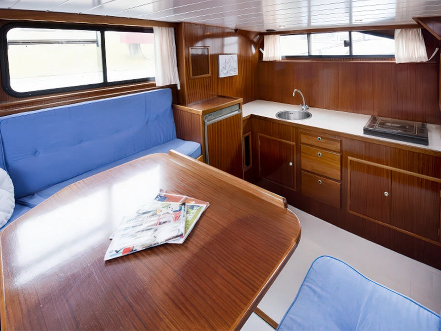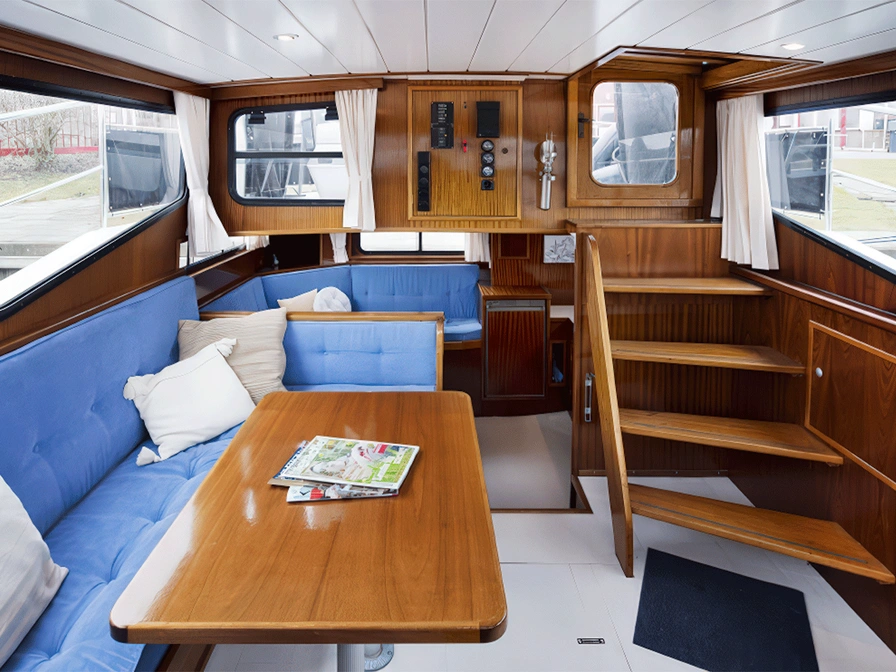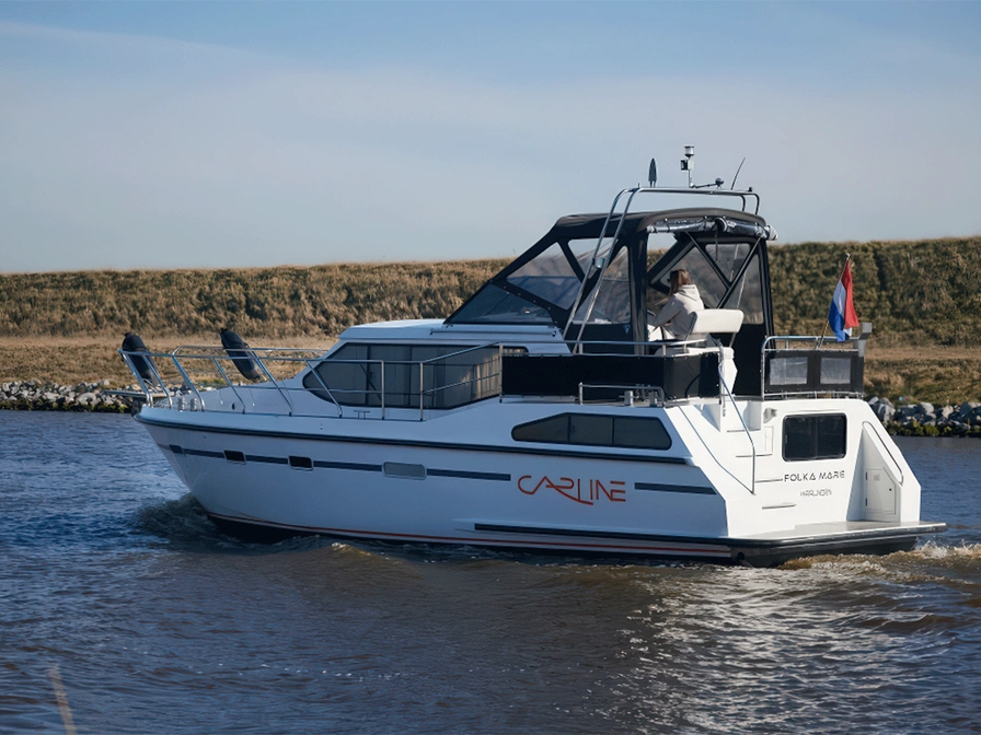 De Folka Marie is een Carline 1000 met een slimme en ruime indeling, perfect voor gezinnen of twee stellen. De dinette met tv kan eenvoudig worden omgebouwd tot een tweepersoonsbed. De kombuis is praktisch ingericht en goed uitgerust. De binnenstuurstand biedt een comfortabele zitplek met salontafel en ruim uitzicht. Verder zijn er een afgesloten tweepersoonshut, een stapelbed, een apart toilet en een separate doucheruimte. Alle bedden zijn 2 meter lang. Buiten biedt de open achterruimte voldoende zitruimte om te ontspannen en van het water te genieten.
