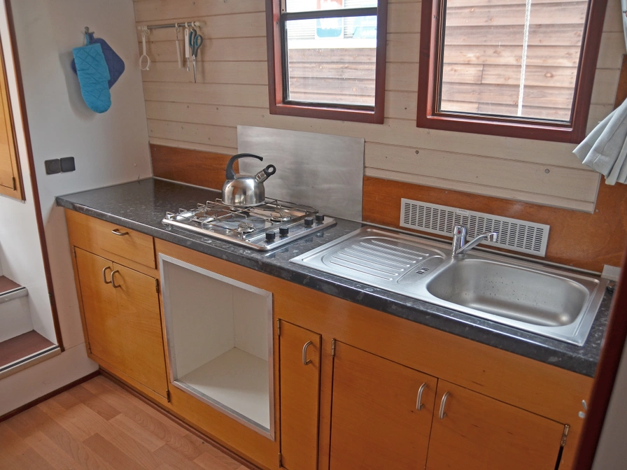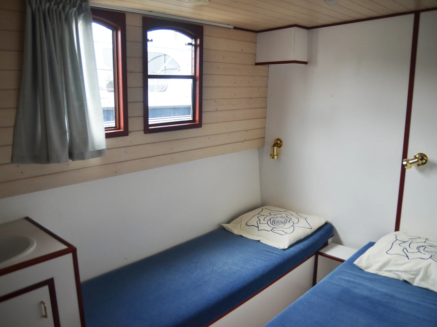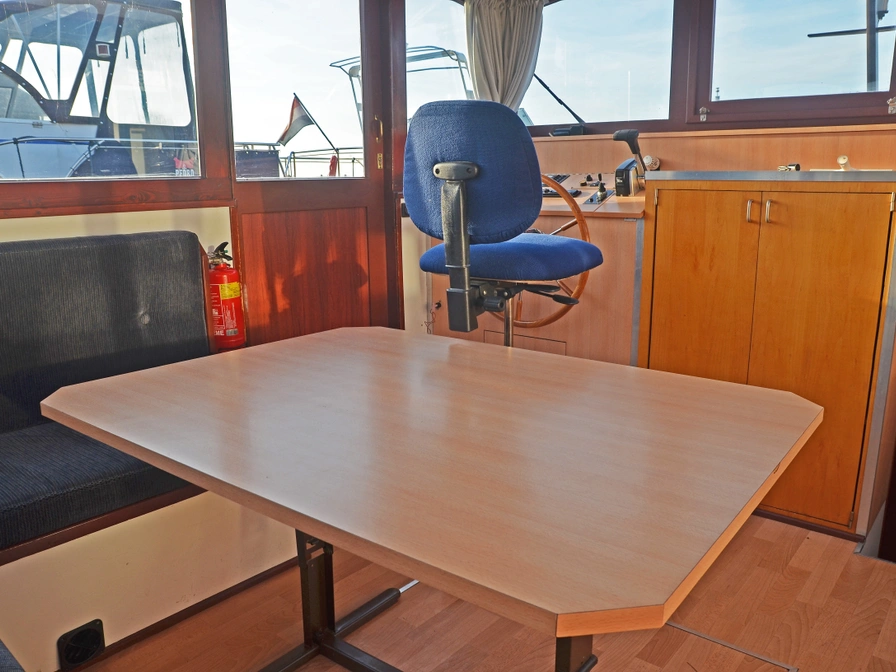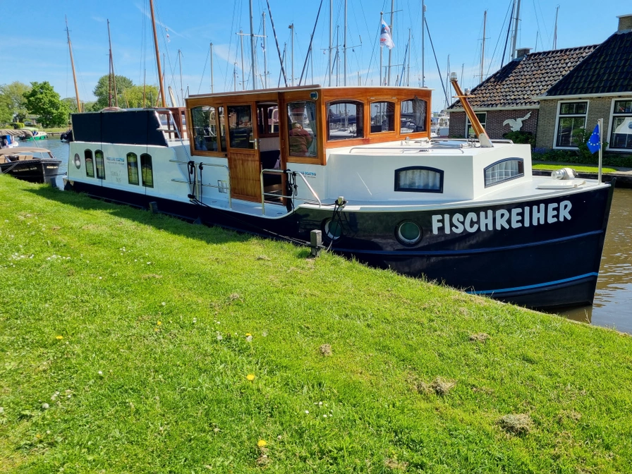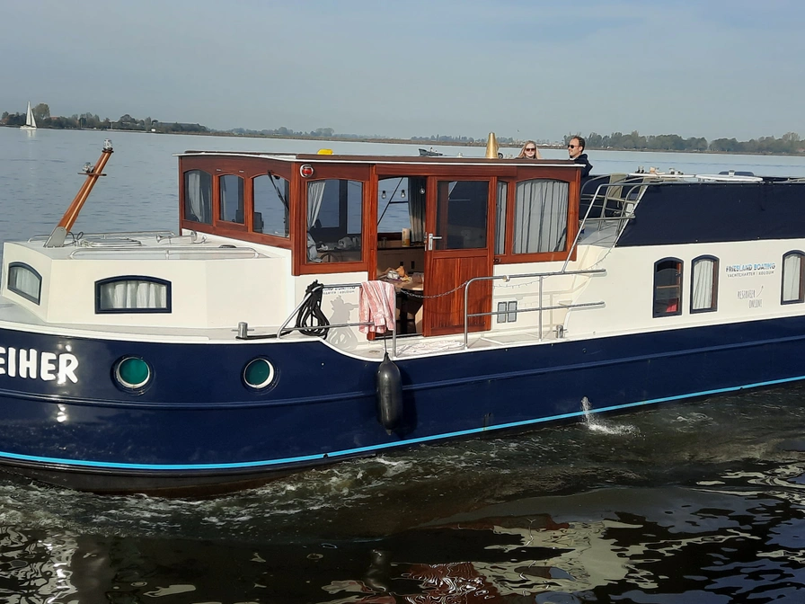 De Kormoran 1260 Fischreiher is een ruime en comfortabele boot, ideaal voor gezinnen en vriendengroepen. De salon heeft een grote zithoek met panoramisch uitzicht over het water. Er zijn drie slaapcabines, elk met een eigen douche en toilet, wat zorgt voor extra privacy. De goed uitgeruste keuken beschikt over een grote koelkast met diepvriesvak, een boiler voor warm water en centrale verwarming, waardoor je volledig zelfvoorzienend bent. Buiten vind je een ruim achterdek en een uitzonderlijk groot dakterras, waar negen personen comfortabel kunnen zitten en genieten van het uitzicht.