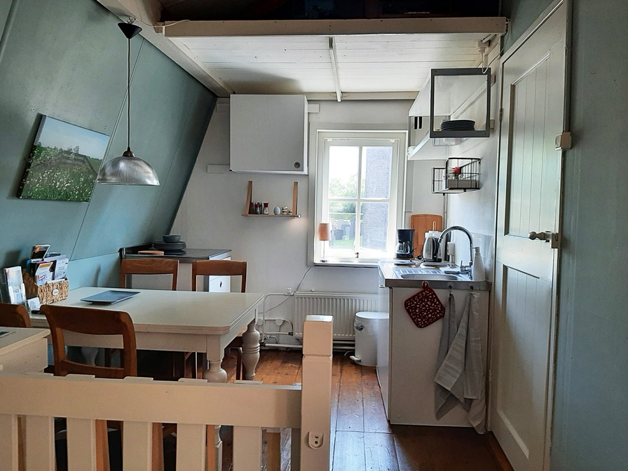 Dit appartement bevindt zich op de eerste etage van één van de oudste huizen van Warns. De Loft is ruim opgezet met een kitchenette en eethoek. Daarnaast is er een gezellige woonruimte met een comfortabele zithoek en televisie. De ruime slaapkamer heeft veel kastruimte, een tweepersoonsbed en een extra eenpersoonsbed. Eventueel is het mogelijk om een extra opklapbed in de woonkamer te plaatsen zodat er een vierde slaapplaats wordt gecreëerd. Je hebt de beschikking over een eigen badkamer met douche, toilet en wastafel. Voor het reserveren van deze accommodatie, dien je rechtstreeks contact op te nemen met de verhuurder.
