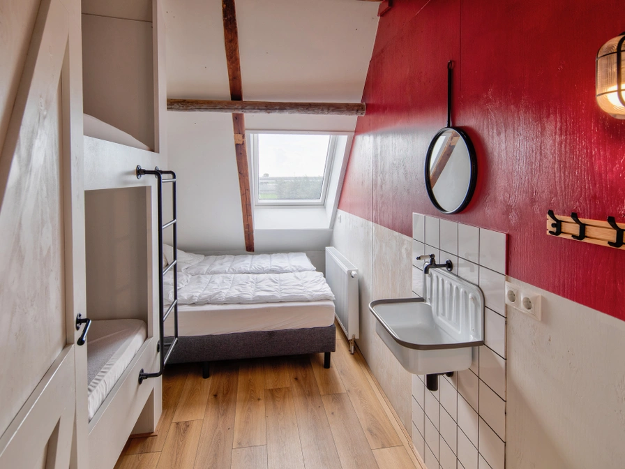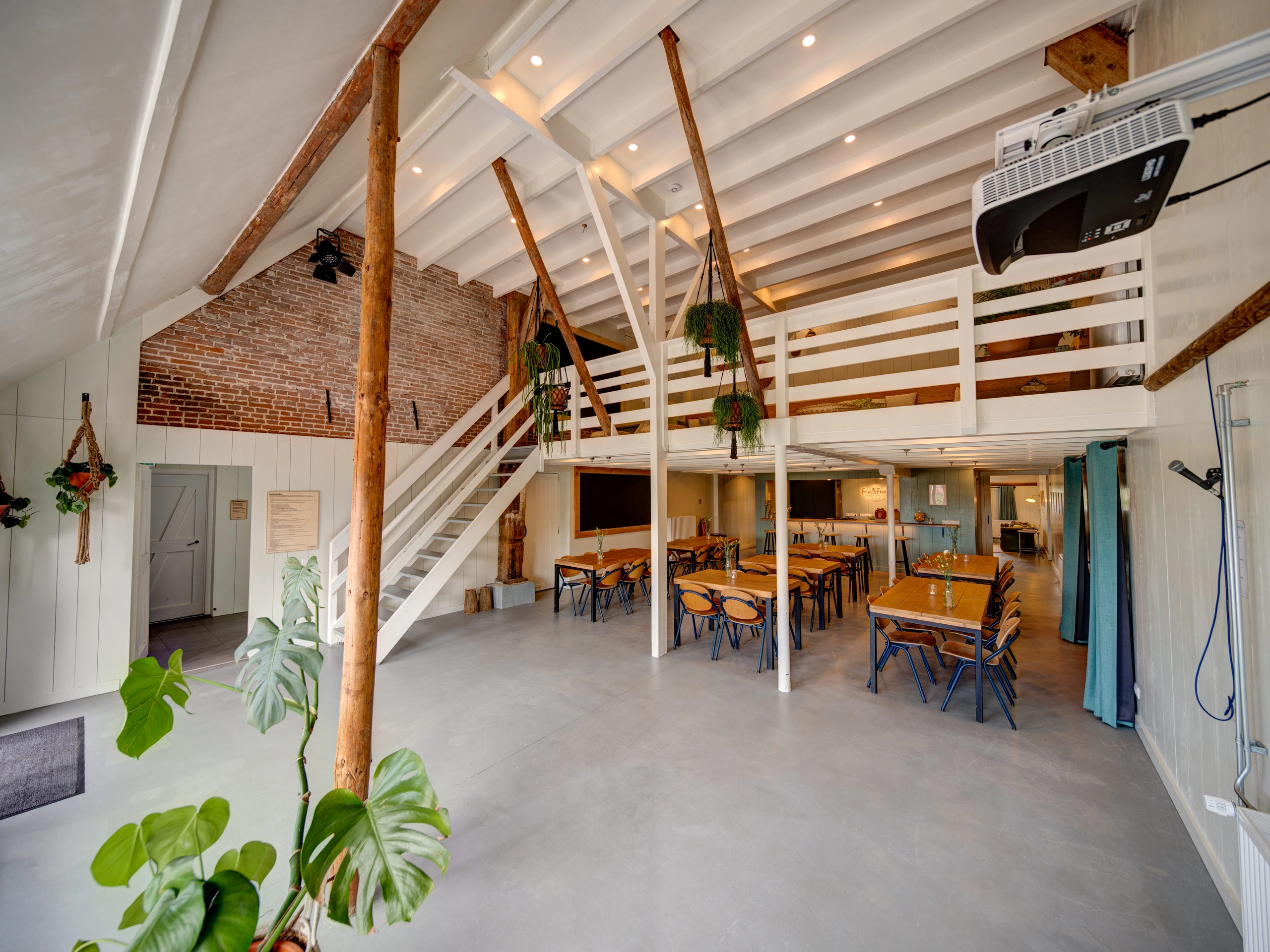 Deze vrijstaande accommodatie ligt direct aan het water en is in 2019 volledig gemoderniseerd. De unieke combinatie van karakter en comfort maakt het de perfecte plek voor groepen van 30 tot 100 personen. Binnen vind je een ruime en lichte gemeenschappelijke ruimte met stoelen en tafels voor 50 personen. Deze kan eenvoudig worden uitgebreid tot 75 zitplaatsen. Voor grotere groepen kunnen er extra tafels en stoelen worden geplaatst op de vide, waardoor er plek is voor maximaal 100 personen. De ruimte beschikt over een gezellige bar met compleet inventaris, openslaande deuren naar buiten en audiovisuele middelen voor presentaties of sfeervolle avonden. Achter de bar bevindt zich een aparte lounge met uitzicht over het terrein en een voetbaltafel. Bij grote groepen wordt deze ruimte gebruikt als extra eetgedeelte. De professionele keuken is van alle gemakken voorzien, waaronder een wasstraat, 6-pits gasfornuis, koel- en vrieskasten, een grote oven, magnetron en een volledig inventaris. Op de eerste verdieping bevindt zich een sfeervolle vide met flexibele lounge-opstelling en uitzicht op de gemeenschappelijke ruimte. Er zijn meerdere slaapvertrekken met unieke bedstedes en voldoende sanitaire voorzieningen, waardoor iedereen comfortabel kan overnachten. Buiten is er volop ruimte om te ontspannen en te spelen. Het terrein beschikt over een recreatieveld met volleybalnet, vuurplaats, groot parkeerterrein en een gezellig overdekt terras. Tijdens je verblijf kun je ervoor kiezen om volledig ontzorgd te worden. Wij verzorgen graag de catering en kunnen een compleet programma samenstellen. Kortom: de ideale locatie voor familie- en vriendenweekenden, bedrijfsuitjes, vergaderingen, bruiloften en school- of zeilkampen.