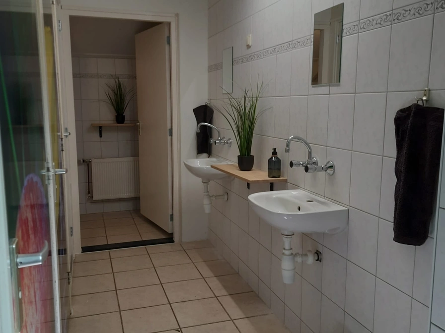 Unieke buitenlocatie in Friesland! Maak kennis met een boomhut, of toch liever de ark. Dichter bij de natuur kan eigenlijk niet. Het hele Paradijs is af te huren voor bijvoorbeeld een grote familie of samen met je vrienden en toch ieder een beetje zijn eigen plek. Er is namelijk een prachtige tuin met rondom water. Er is een prachtige groepsaccommodatie waar je gezamenlijk kunt eten en daarna kunt slapen in de boomhut of toch liever in een klein kapelletje. Voor iedereen is wel een mooie plek te vinden. Daarnaast is er de houtgestookte sauna te huren of wil je toch liever sportief bezig zijn? Dan vaar je met de kano zo weg om de omgeving te verkennen. De groepsaccommodatie heeft een unieke indeling; je slaapt en kookt beneden, je woont boven! Wanneer je de woning binnenstapt zie je aan je rechterhand al de deuren naar de douche en het toilet. Even verder vind je de beide slaapkamers, de ene slaapkamer is geschikt voor drie personen en de andere slaapkamer is geschikt voor vijf personen. Op de begane grond is er ook nog de ruime, goed uitgeruste keuken, met onder andere een vaatwasser en oven. Wanneer je de trap naar boven oploopt, kom je uit in een grote woonruimte. Hier staat een gezellige en knusse bank en even verderop is de eetkamer met grote tafel. Op deze verdieping is ook een bedstee gecreëerd, die geschikt is voor twee personen. Als laatste is er boven nog een kleine kitchenette waar je gemakkelijk een kopje koffie of thee zet. Rondom het huis is een ruime tuin met onder andere een plaats waar je een kampvuur kunt maken. Naast de groepsaccommodatie slaap je in verschillende hutjes verdeeld over het Kleine Paradijs. We hebben twee boomhutten, een rood Kapelletje, twee blokhutten, één tuinark en een ecohuisje. Alle huisjes beschikken over een tweepersoonsbed. Er bevindt zich een tweede volledig uitgeruste gezamenlijke keuken op een centrale plaats op ons erf. Graag zelf (bad)handdoeken meenemen, Het moderne en goed verzorgde sanitair is op korte loopafstand van de hutjes. We zijn eerder een stilte plek dan een disco locatie. Harde muziek, zoals sound blasters, geeft te veel overlast voor de buren. Akoestisch muziek is natuurlijk geen probleem en vinden we leuk!