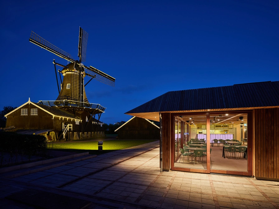 Het Molenhuis in Woudsend is dé plek waar groepen samenkomen voor een onvergetelijk verblijf. Door Het Jurjenshuis en Het Jelleshuis exclusief te huren, combineer je het beste van twee volledig vernieuwde accommodaties, ideaal voor grote gezelschappen. Het Molenhuis biedt plaats aan meer dan 120 personen en is perfect voor zeilkampen, familieweekenden, bedrijfsuitjes en andere groepsactiviteiten. Met twee moderne keukens, waaronder een professionele horecakeuken en een handige pantry met horecaoven, is het voorbereiden van maaltijden voor grote groepen een fluitje van een cent. Je hebt daarnaast de beschikking over drie grote recreatiezalen, elk met een unieke sfeer en moderne faciliteiten zoals een bar en ingebouwde geluidsinstallaties. Deze ruimtes bieden volop mogelijkheden voor gezamenlijke activiteiten of ontspannen momenten. Het Molenhuis ligt in het charmante watersportdorp Woudsend, midden in het Friese merengebied. Vanuit onze eigen aanlegsteigers vaar je zo het Slotermeer, Heegermeer of de Noorder Ee op, terwijl het dorp zelf bruist van gezellige restaurants, cafés en winkels. Het uitgestrekte buitenterrein biedt ruimte voor sport, spel en avondprogramma’s, met grote grasvelden waar je je helemaal kunt uitleven. De historische houtzaagmolen De Jager vormt het hart van Het Molenhuis en zorgt voor een unieke sfeer. Deze bijna 300 jaar oude molen is nog steeds in bedrijf en geeft jouw verblijf een bijzonder karakter. Bezoek op zaterdag de molenaars voor een rondleiding en ontdek dit stukje levend erfgoed.