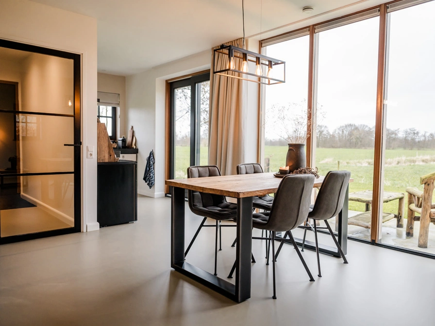 In deze royale en luxe vakantiewoning beleef je het landelijke leven op z’n best. Vanuit je bed kijk je uit over de uitgestrekte weilanden van de Friese Wouden. Met een beetje geluk zie je reeën, hazen of koeien in de ochtendnevel voorbij trekken. De opkomende zon maakt het plaatje compleet. De woning is van alle gemakken voorzien. Je slaapt op een comfortabel boxspringbed en kunt heerlijk ontspannen in de whirlpool of onder de regendouche. De ruime woonkamer en complete keuken zorgen ervoor dat je je hier direct thuis voelt. Ook aan warme dagen is gedacht: met de airconditioning blijf je aangenaam koel. 's Ochtends begin je je dag met een kopje Nespresso of thee. De basisvoorzieningen zoals koffie, thee, kruiden, olie en toiletpapier zijn aanwezig. Handdoeken, washandjes en beddengoed liggen voor je klaar. Verblijf je wat langer? Dan kun je gebruikmaken van de wasmachine inclusief wasmiddel. Deze plek is een prachtig vertrekpunt om de natuur en omgeving te ontdekken. Je zit dichtbij Drachten, natuurgebieden en de A7. Eenmaal binnen ervaar je vooral rust, ruimte en comfort.