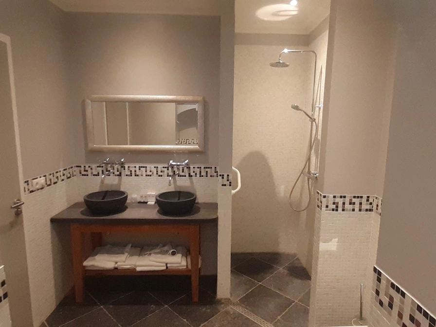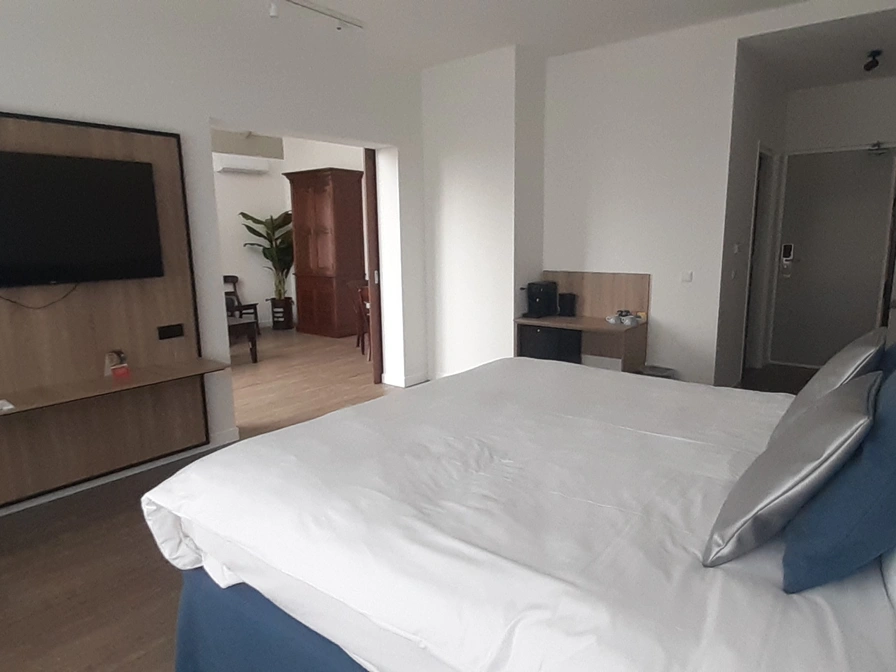 In deze prachtig ruime suite ben je voorzien van al het gemak. Met een aparte slaapkamer en woonkamer heb je alle ruimte. De badkamer heeft een heerlijk ligbad waar je helemaal tot rust kunt komen tijdens je verblijf. Als je graag wilt verblijven in een kamer waar je alle comfort hebt, dan is dit de juiste plek.