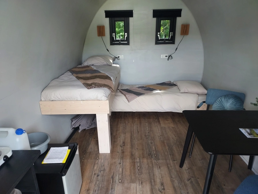 - De pod is volledig geïsoleerd en heeft vloerverwarming. Zo kun je er jaarrond van genieten. - Je dient zelf beddengoed (onderlaken, kussensloop en dekbedovertrek) mee te nemen. Een dekbed en kussen is aanwezig.