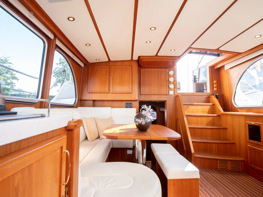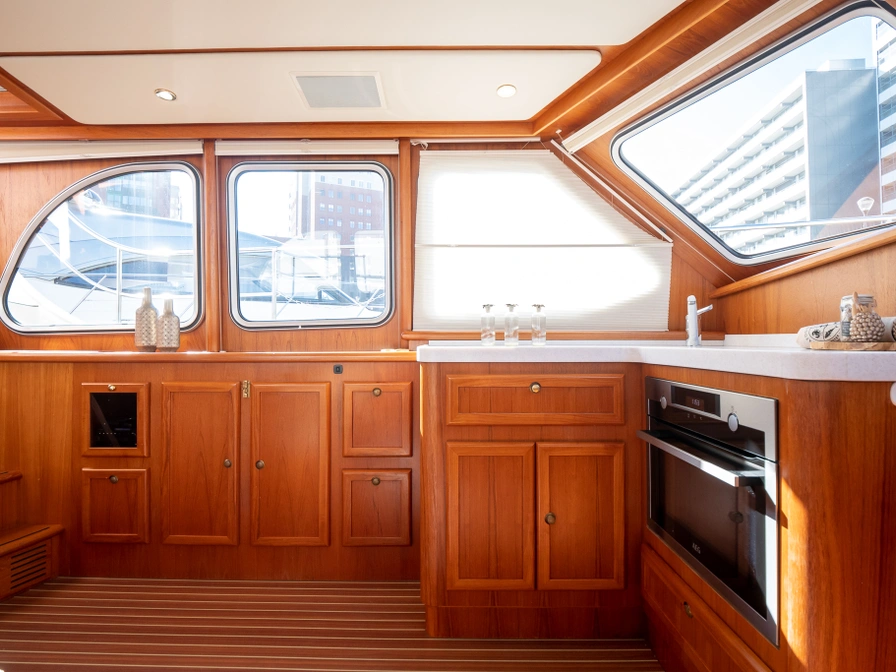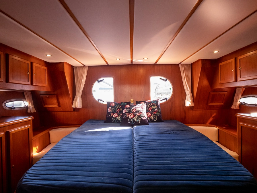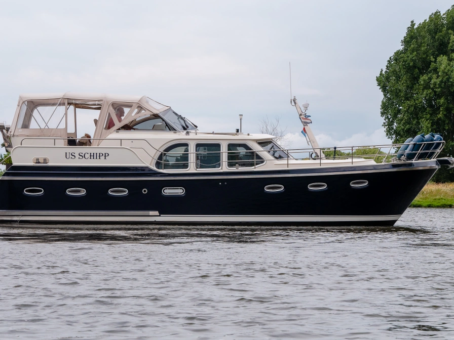 Stap aan boord van het ruime motorjacht De Drait Deluxe 42 'Us Schipp' en geniet van comfort en vrijheid op het water. Dit schip is van alle gemakken voorzien. Door de grote achtertent welke voorzien is van een ruime rondzit, zit je warm, droog en comfortabel. Deze beschikt ook over muggenhorren, waardoor je er het gehele seizoen comfortabel zit. Ook is het zwemplateau toegankelijk door de grote trappen vanaf het achterdek. Met drie hutten, zes vaste slaapplaatsen, meerdere badkamers en een ruim achterdek vaar je tot maximaal zeven personen ontspannen door Friesland. Door het ruime navigatiepakket met onder andere een kaartplotter, marifoon, AIS locatie volgsysteem, dieptemeter en snelheidsmeter ben je van alle gemakken voorzien. Voor het reserveren van deze boot dien je rechtstreeks contact op te nemen met de verhuurder.