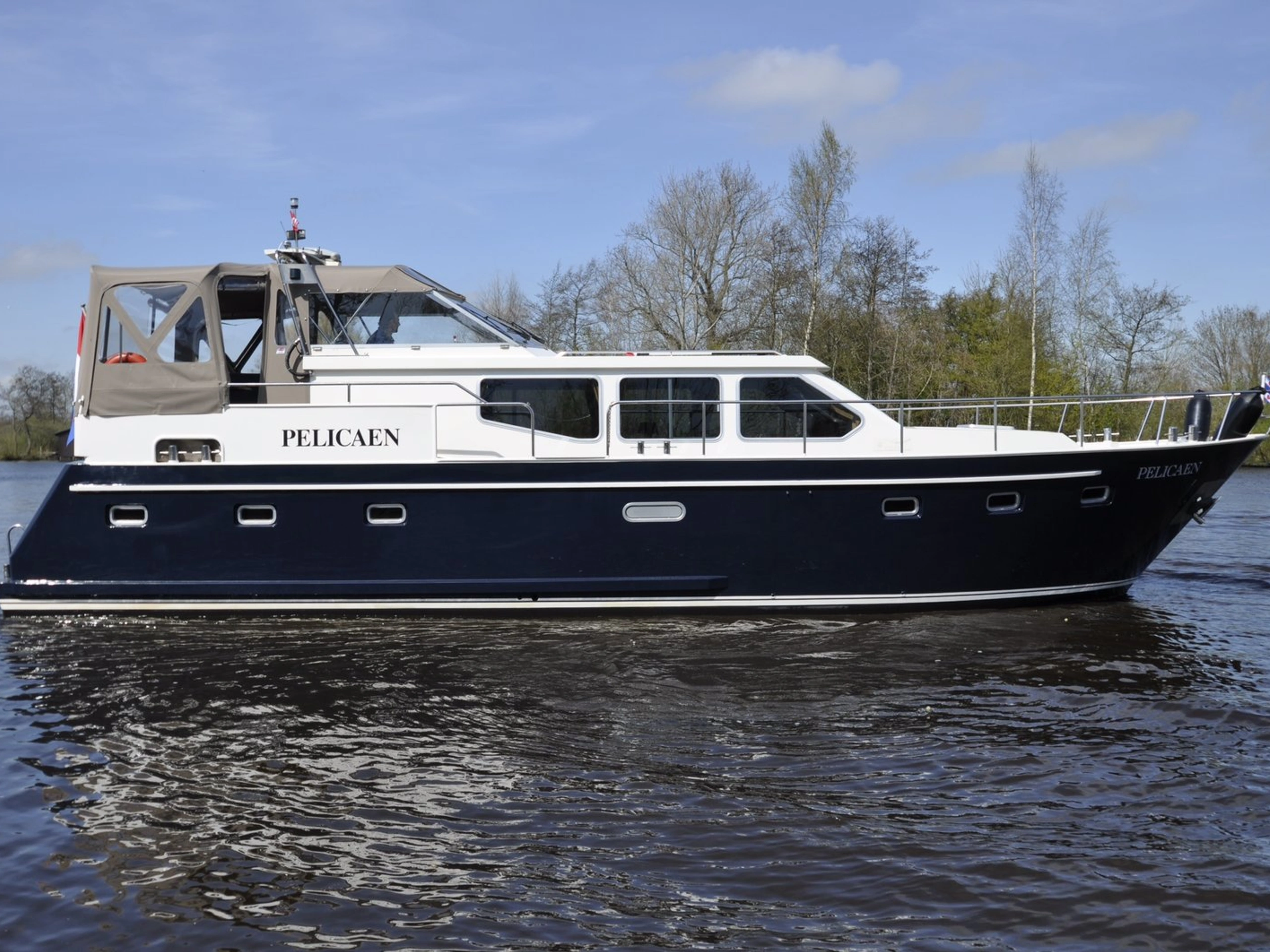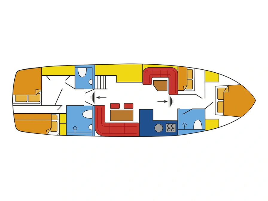 Dit moderne motorjacht is van alle gemakken voorzien en beschikt onder andere over een boeg- en hekschroef. Dit maakt dat je eenvoudig met de boot kunt manoeuvreren. Door de besturing op het achterdek en de hoge zit heb je een ruim overzicht en dankzij de tent zit je altijd beschut. Het interieur van de boot is ruimtelijk opgezet met twee zithoeken en een fijne keuken. De keuken beschikt over een oven, gasfornuis en koelkast. In totaal zijn er vier slaapvertrekken aan boord. Drie van deze slaapvertrekken hebben een tweepersoonsbed. Het vierde slaapvertrek heeft een stapelbed met twee eenpersoonsbedden. Dit maakt dat het schip geschikt is voor maximaal 8 personen. Het schip beschikt over maar liefst drie toiletruimtes waarvan er twee eveneens beschikken over een douche. Voor het reserveren van deze boot dien je rechtstreeks contact op te nemen met de verhuurder.