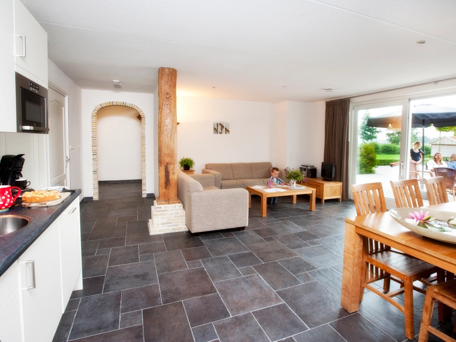 Deze ruime woning heeft een grote woonruimte met daarin zowel een zit- als ook een eethoek en complete keuken. De keuken beschikt onder andere over een kookplaat, koelkast en magnetron. Vanuit de woonruimte stap je eenvoudig het aangrenzende, zonnige terras op. Aangrenzend aan dit terras is een grasveld wat zich er goed voor leent om op te spelen. Op het terrein is voor de kinderen ook nog een speeltuin gerealiseerd. Op de begane grond vind je een slaapkamer met twee eenpersoons boxspringbedden. Daarnaast is er ook nog een ruime badkamer met bubbelbad, toilet en douche op de begane grond. Ultiem genieten is ook de ingebouwde sauna! Op de eerste etage zijn nog twee slaapkamers met elk twee eenpersoons boxspringbedden en een tweede badkamer met toilet, douche en wastafel. De begane grond is geschikt voor rolstoelgebruikers.