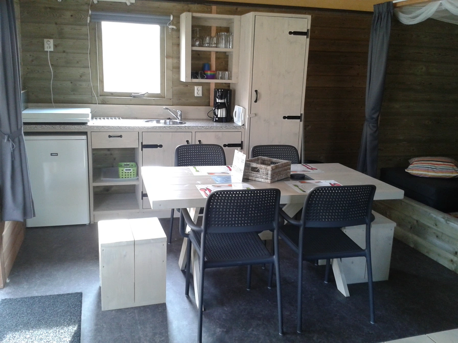De Glamping Lodge heeft een keuken met de nodige voorzieningen, een eettafel, twee slaapkamers en een privétoilet. Voor extra comfort is er een houtpelletkachel. Buiten kun je ontspannen op de veranda met loungeset. De lodge ligt vlakbij het toiletgebouw. Tevens verhuren wij nog een 4-persoons Kampeerlodge en Trekkerslodge. Deze zijn iets kleiner. Voor het reserveren van een lodge op deze camping dien je rechtstreeks contact op te nemen met deze camping.